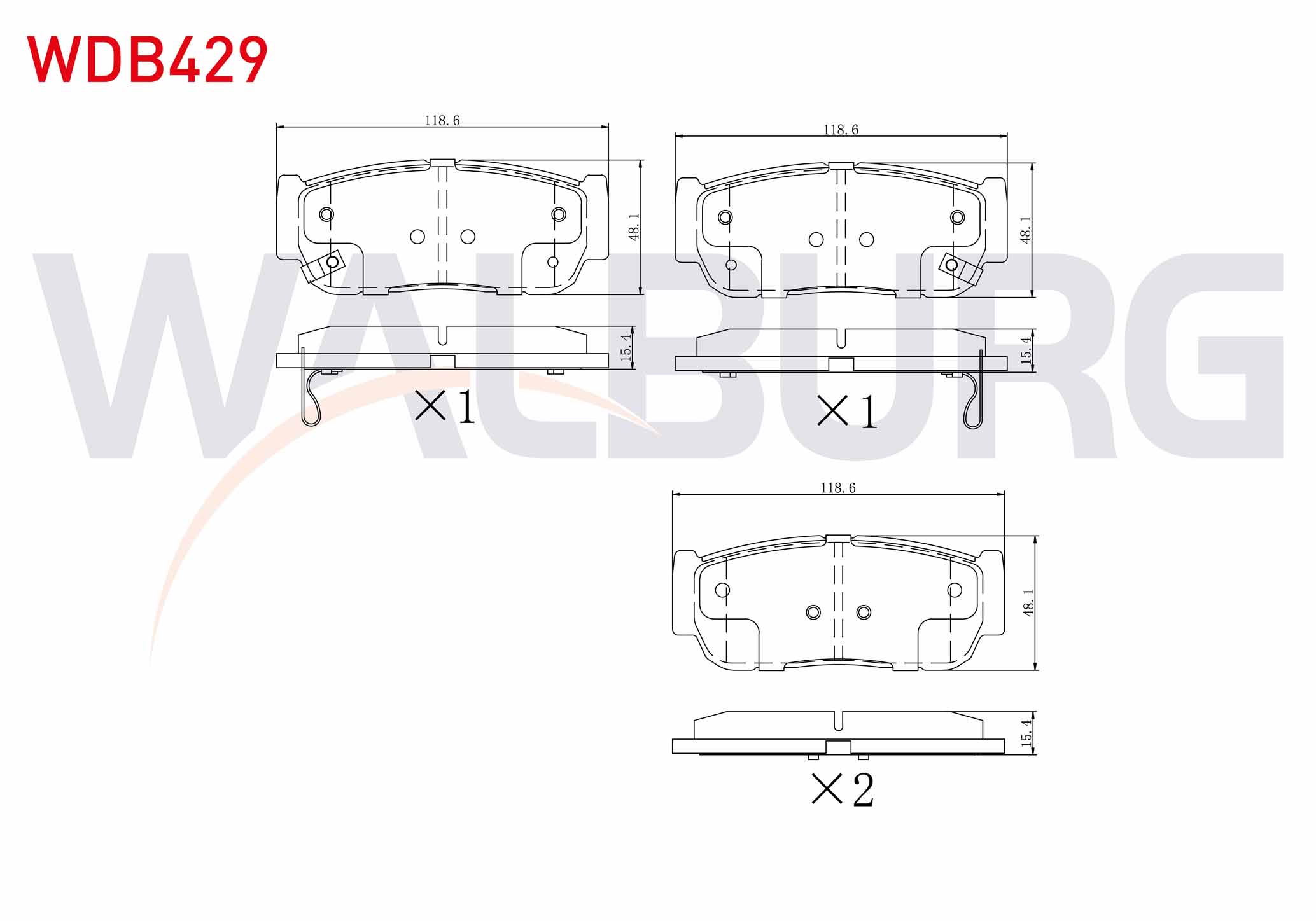 WALBURG WDB429 | Fren Balata Arka Ikazlı Hyundai Santa Fe (Cm) 2.2 CRDI 2006-2012 / Santa Fe (Cm) 2.7İ V6 2006-2012 / Ssangyong Kyron 2.0 Xdı 4Wd 2005-2011 / Rodıus I 2.7 Xdı 4Wd 2005-2013