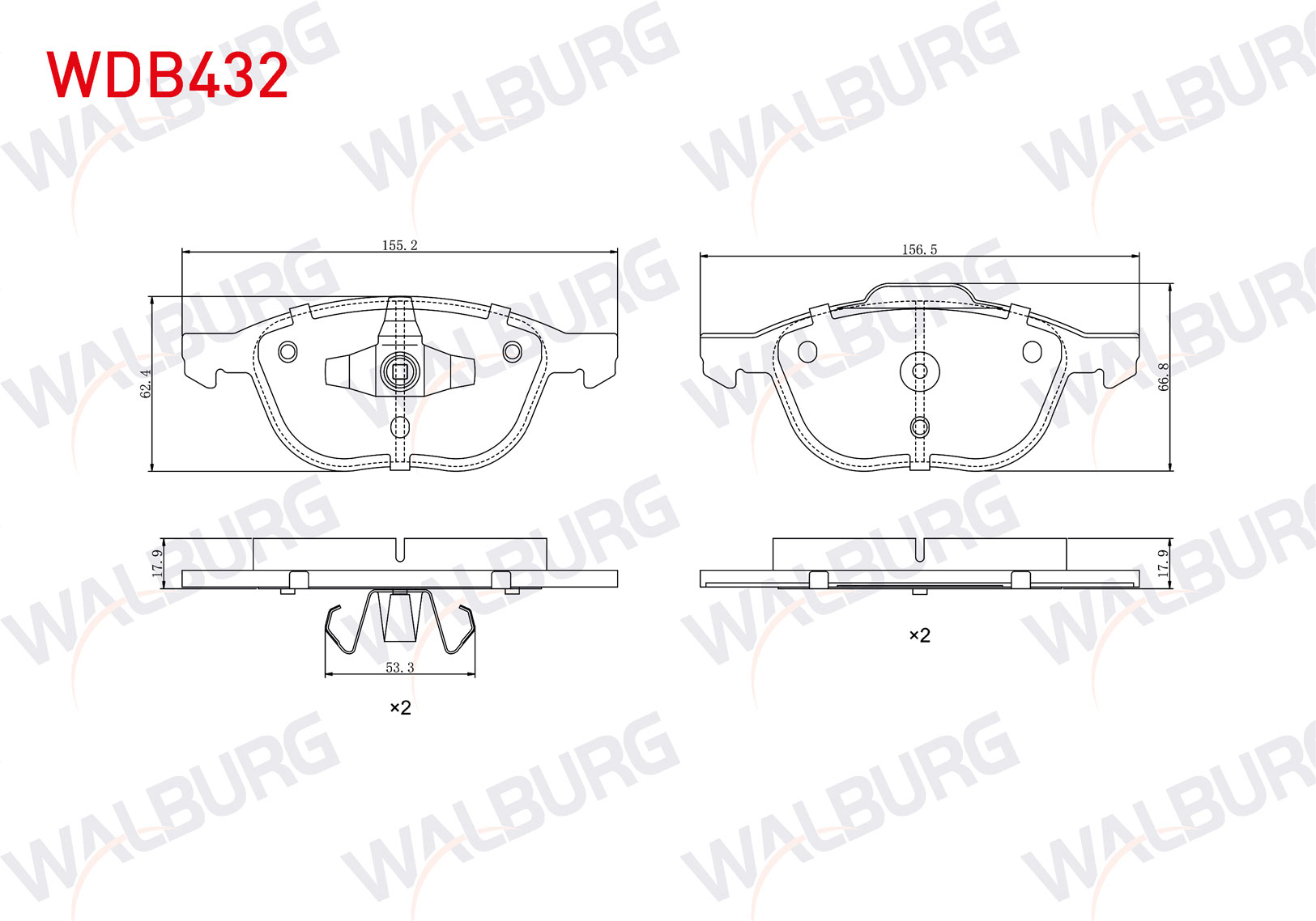 WALBURG WDB432 | Fren Balata Ön Ford Focus II 1.6İ 2004-2011 / Focus II 1.6 TDCI 2004-2011 / C-Max I 1.6 TDCI 2007-2011 / Focus III 1.6 TDCI 2011-2015 / Kuga I 1.6 2008-2013 / Mazda 3 1.4İ 2003-2009 / S40 II 1.6İ 2004-2012