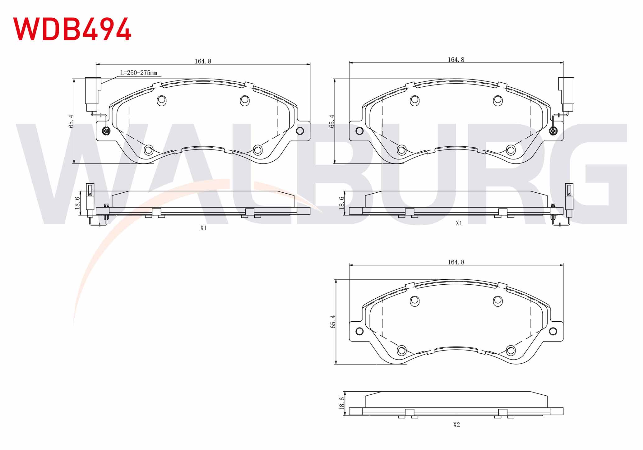 WALBURG WDB494 | Fren Balata Ön Fişli Ford Transit (V347) 2.2 TDCI-3.2 TDCI (Onden Cekıs) 2006-2014 / Transit (V348) 2.2 TDCI-3.2 TDCI (Onden Cekıs) 2006-2014
