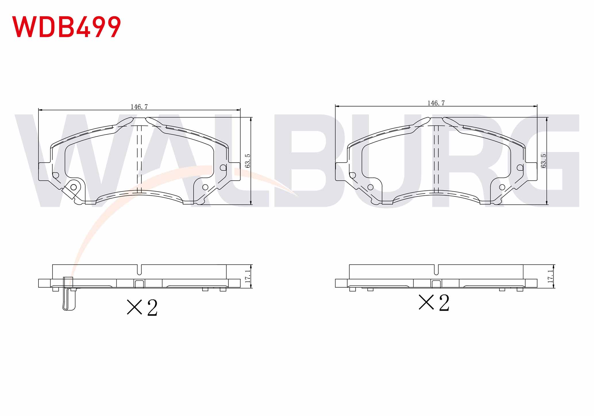 WALBURG WDB499 | Fren Balata Ön Ikazlı Fiat Freemont (Jf) 2.0 Mjt 170 Hp 2011-/ Jeep Wrangler III (Jk) 3.8İ V6 2007-/ Chrysler G.Voyager 3.3İ 2008-/ Dodge Nitro 2.8 Crd 4X4 2007 -