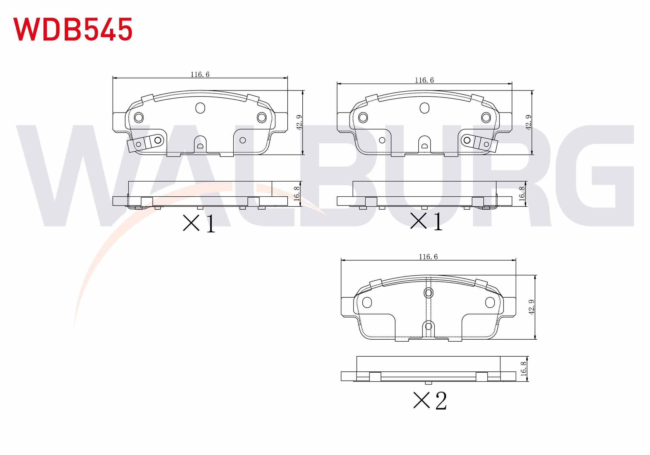 WALBURG WDB545 | Fren Balata Arka Ikazlı Opel Astra J 1.6İ 16 Jant 2009-2016 / 1.3 CDTI 16 2009-2016 / Mokka 1.6 2012-/ Zafira C 1.6 2011-/ Chevrolet Cruze 1.6 2011-2014 / Trax 1.6 2012-2014