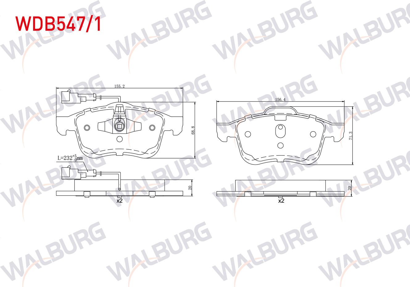WALBURG WDB547/1 | Fren Balata Ön Çift Fişli Fiat Doblo (152,263) 1.6 Mjt 2010-/ Doblo (152,263) 1.3 Mjt 2010-/ Doblo (152,263) 1.9 Mjt 2010-/ Opel Combo D 1.6 CDTI 2012 -