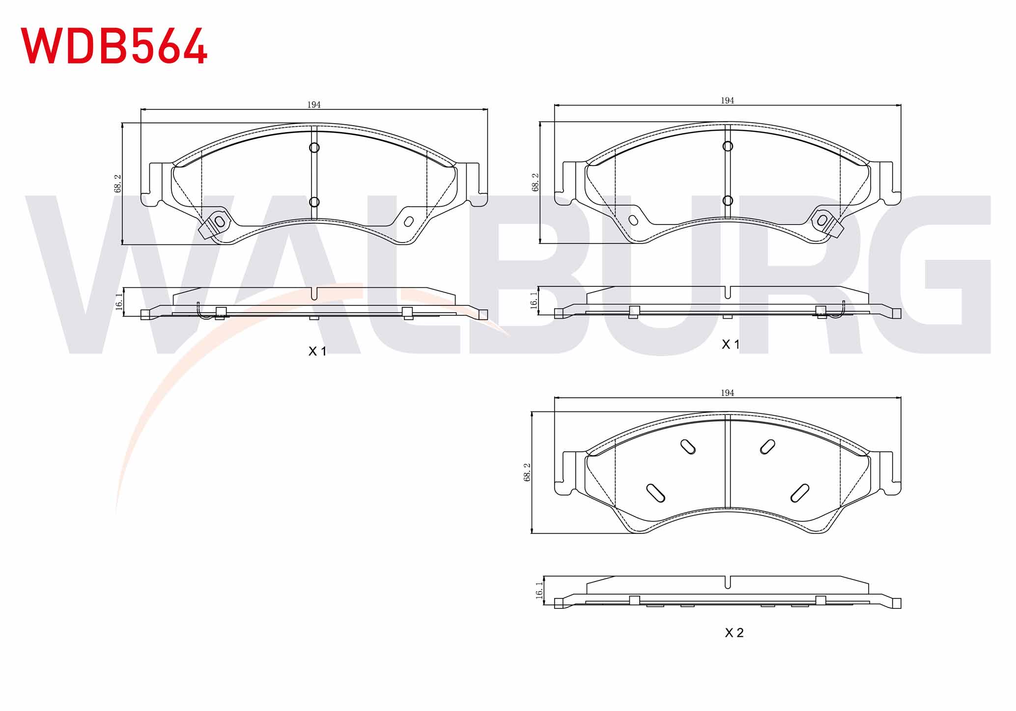 WALBURG WDB564 | Fren Balata Ön Ikazlı Ford Ranger (Tke) 2.2 TDCI 4X4 2011-/ Ranger (Tke) 2.5 TDCI 4X4 2011-/ Ranger 3.0 TDCI 4X4 2011-/ Mazda Bt-50 2.5 Cd 4X4 2006 -