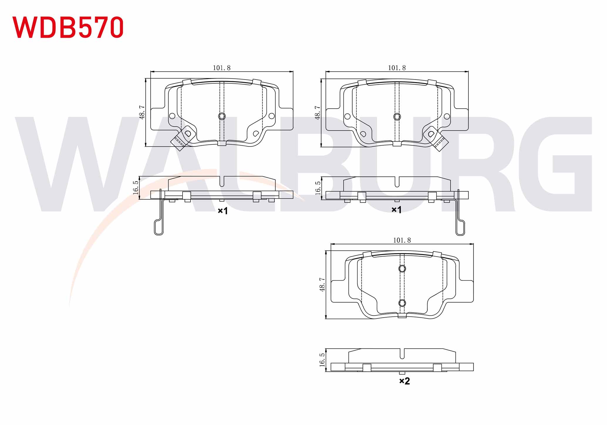 WALBURG WDB570 | Fren Balata Arka Ikazlı Toyota Verso (_Aur2_, _Zgr2_) 1.6 2009-/ Verso (_Aur2_, _Zgr2_) 1.8 2009 -