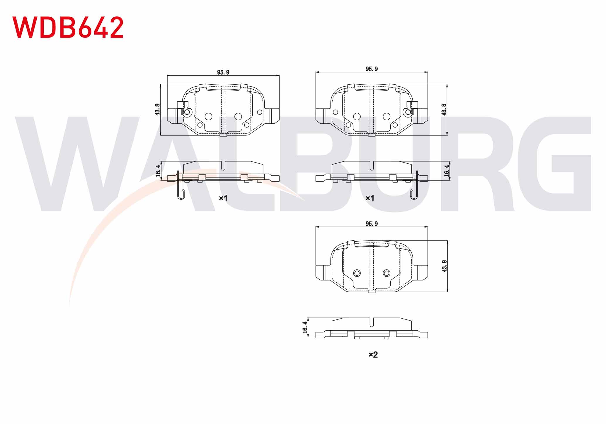 WALBURG WDB642 | Fren Balata Arka Fiat 500L 1.6 Mjt 2012-/ 500L 1.3 Mjt 2012-/ 500L 0.9 2012-/ 500L 1.4 2012 -