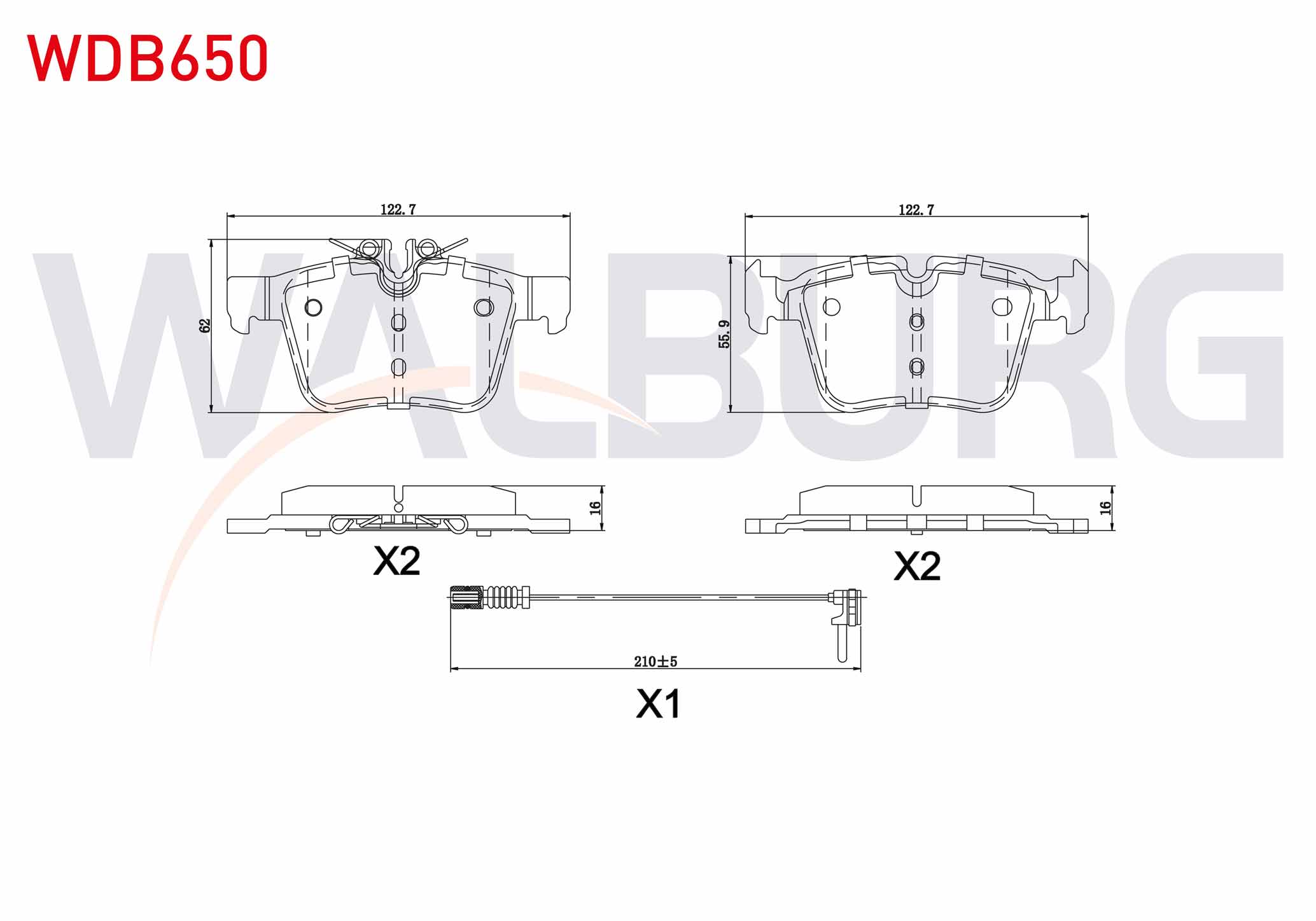 WALBURG WDB650 | Fren Balata Fişli Arka Mercedes C Serisi (W205) C 200 Bluetec 2014-/ C 220 Bluetec 2014-/ C 250 Bluetec 2014 -