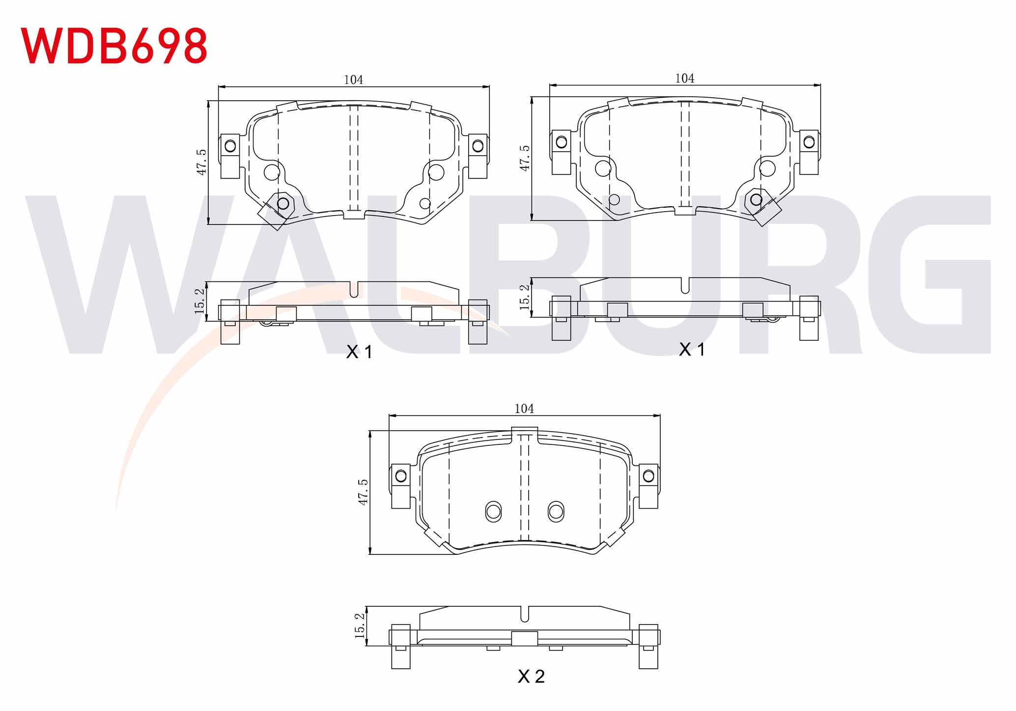 WALBURG WDB698 | Fren Balata Arka Ikazlı Mazda 6 (Gj,Gh) 2.0 2013-/ Mazda 6 (Gj,Gh) 2.2 D 2013 -