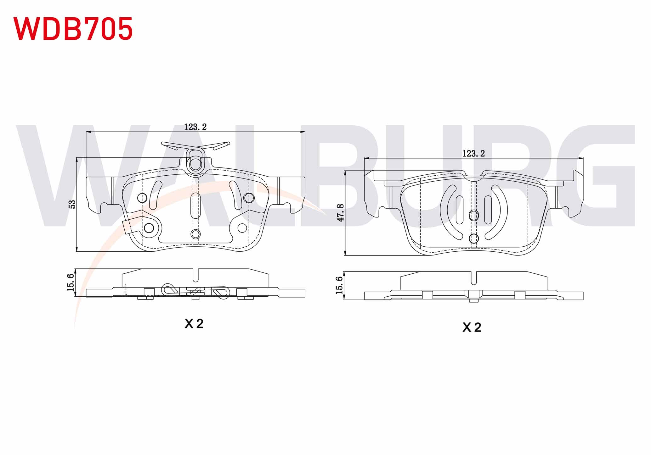 WALBURG WDB705 | Fren Balata Arka Ikazlı Ford Mondeo V 2014-/ Focus IV 2018-/ Kuga II 2014-2019 / S-Max 2015 -