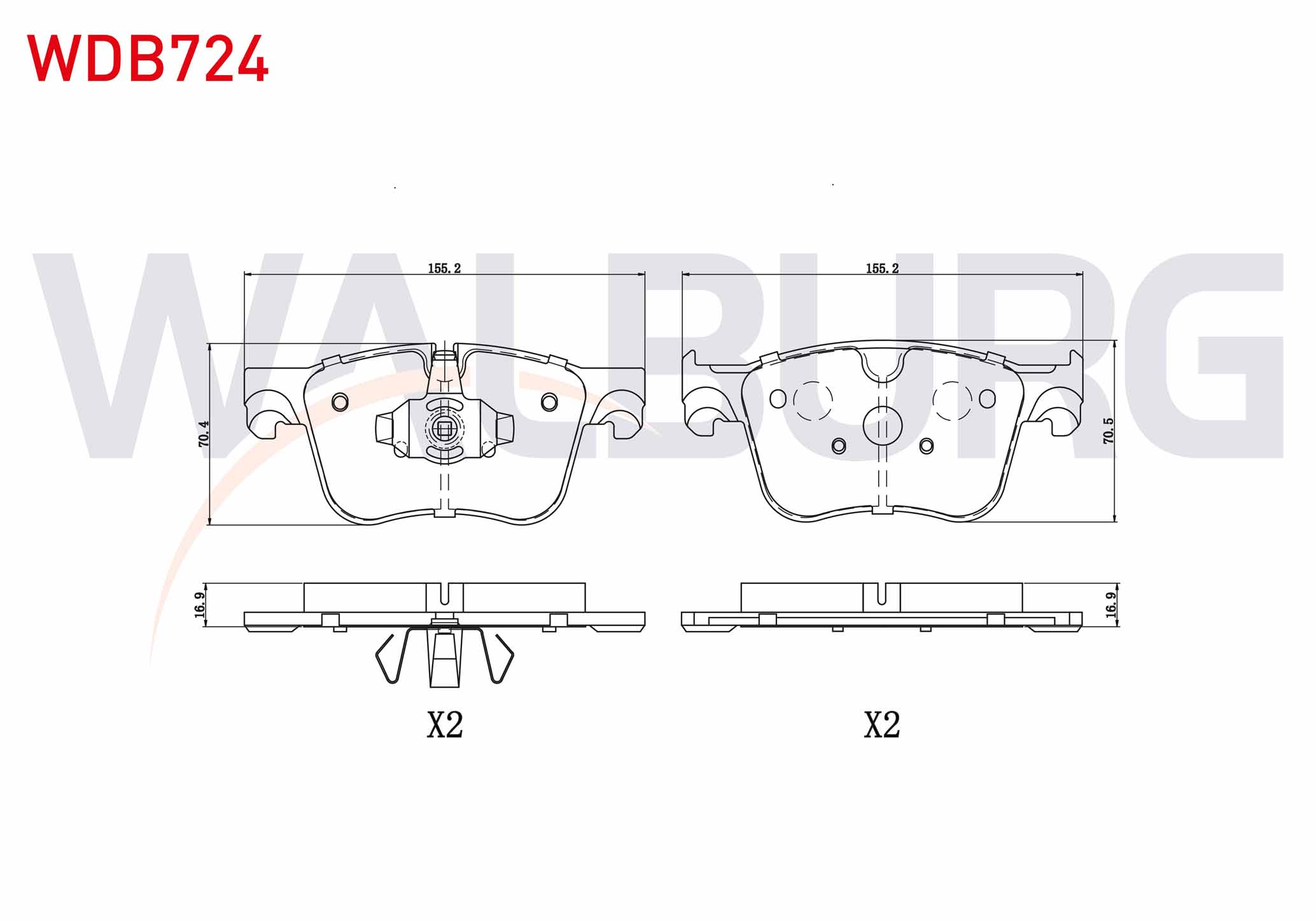 WALBURG WDB724 | Fren Balata Ön Peugeot 3008 16-/ 508 II 18-/ 5008 II 16-/ Partner 18-/ Rifter 19-/ Toyota Proace 2019-/ Citroen C4 Picasso 13-/ Berlingo 16-/ C5 Aircross 18-/ Opel Grandland 17-/ Combo E 18-/ Ds 7 17 -