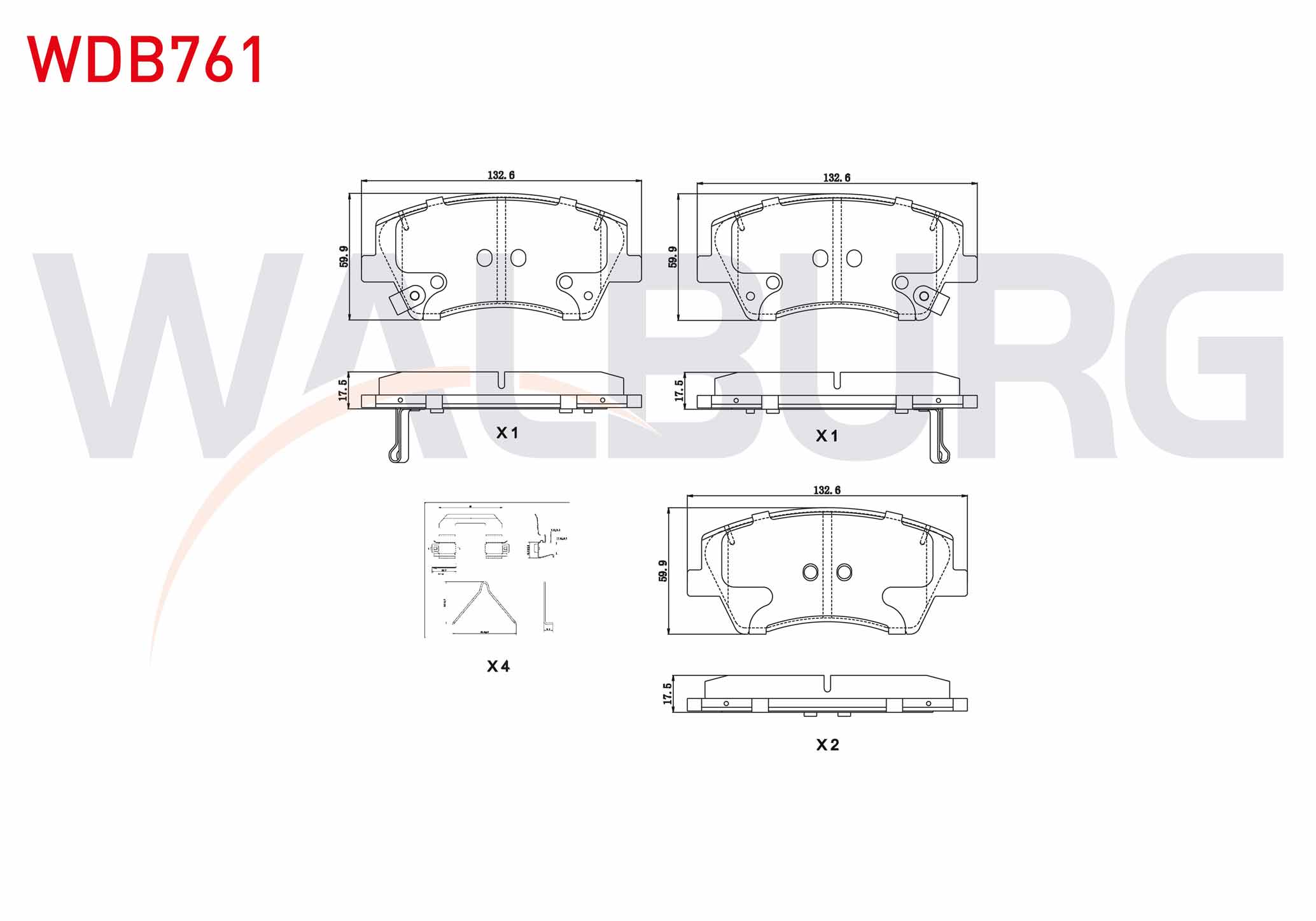 WALBURG WDB761 | Fren Balata Ön Ikazlı Tel Delikli Ince Kulaklı Hyundai Elantra 1.6 CRDI-1.6 D-Cvvt 2015 -
