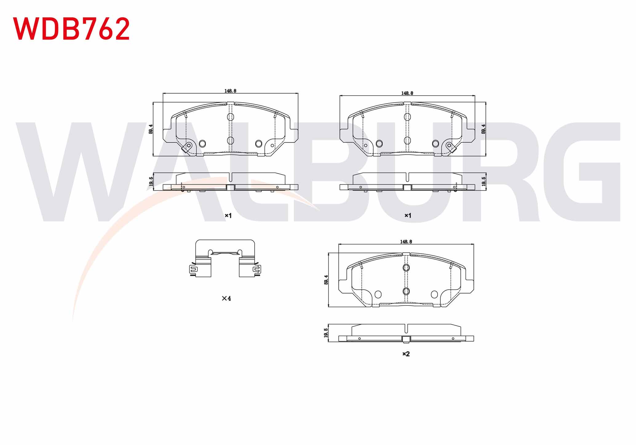WALBURG WDB762 | Fren Balata Ön Ikazlı Tel Delikli Hyundai i30 (Pde, Pd) 1.6 CRDI 2016-/ i30 (Pde, Pd) 1.4 Mpı 2016-/ Kia Ceed 1.6 CRDI 2006-2012