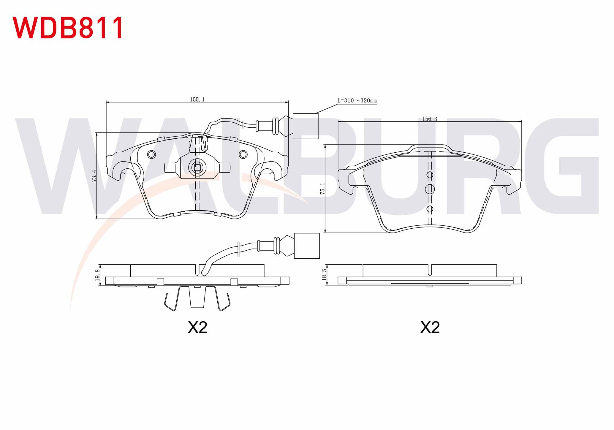WALBURG WDB811 | Fren Balata Ön Fişli Volkswagen Touareg 3.2İ V6 2002-2010 / Touareg 2.5 R5 TDI 2002-2010 / Touareg 3.0 V6 TDI 2002-2010 / Porsche Cayenne 3.6İ 2010-/ Porsche Cayenne 3.0 TDI 2002-2010