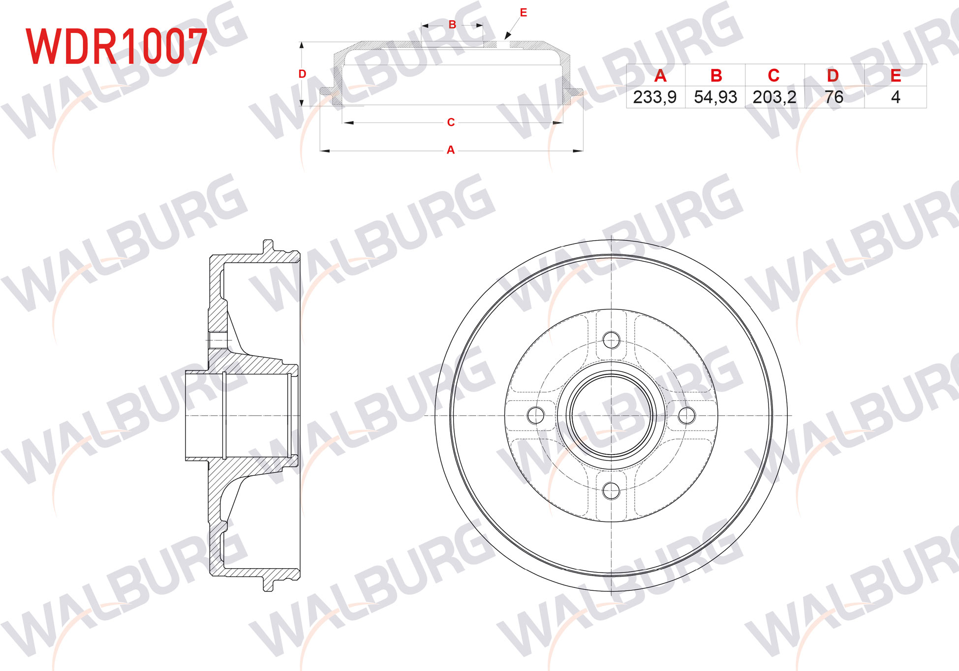 WALBURG WDR1007 | Fren Kampanası Arka Küçük Tip 4 Delik 233,9X54,93X203,2X76 Renault Kangoo 1.5 DCI-1.9 Dtı 1998-2008