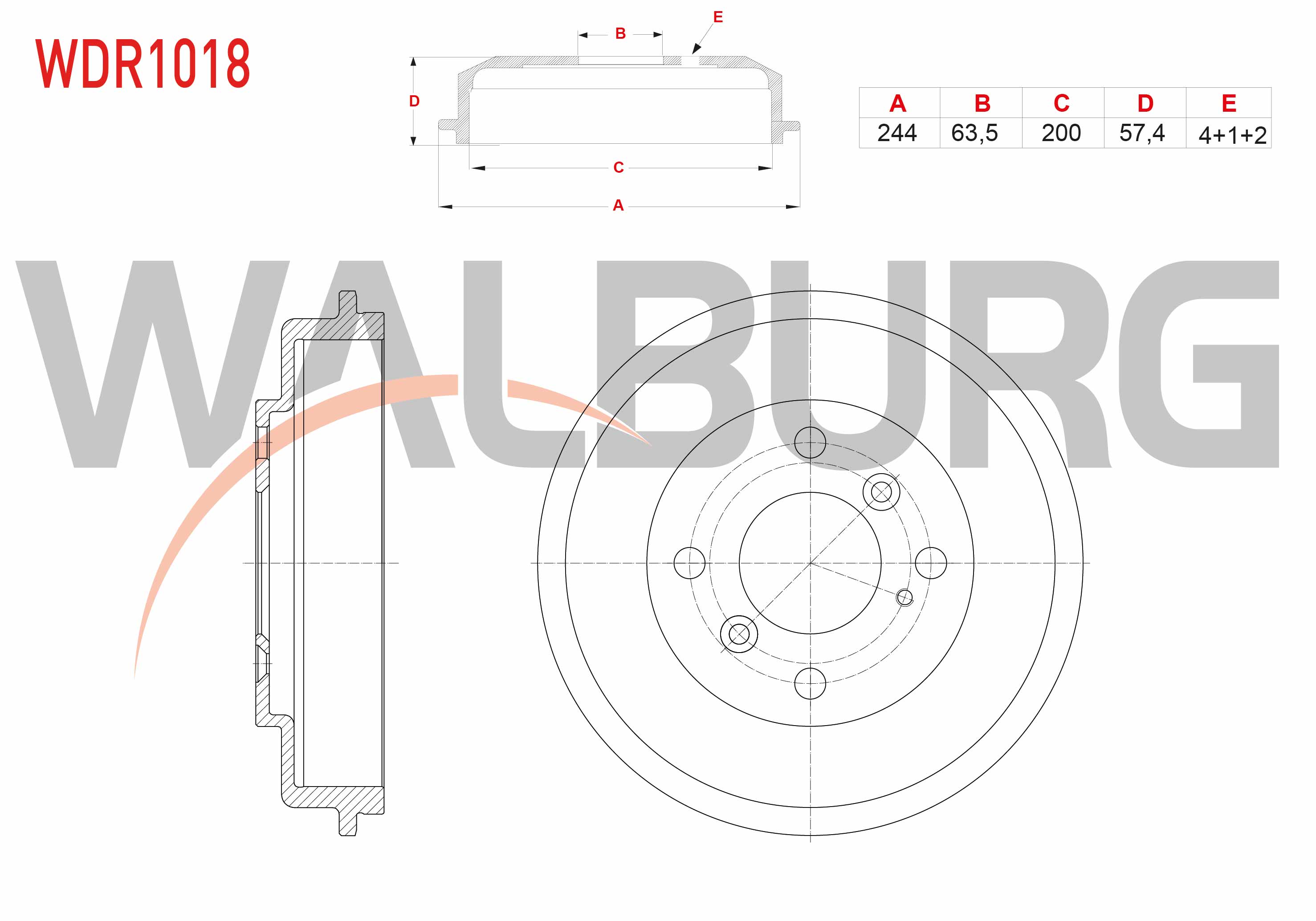 WALBURG WDR1018 | Fren Kampanası Arka 4 Delik 244X63,5X200x57,4 Ford Fiesta VI 1.25İ-1.4 TDCI-1.4İ-1.6 TDCI 2008-2012