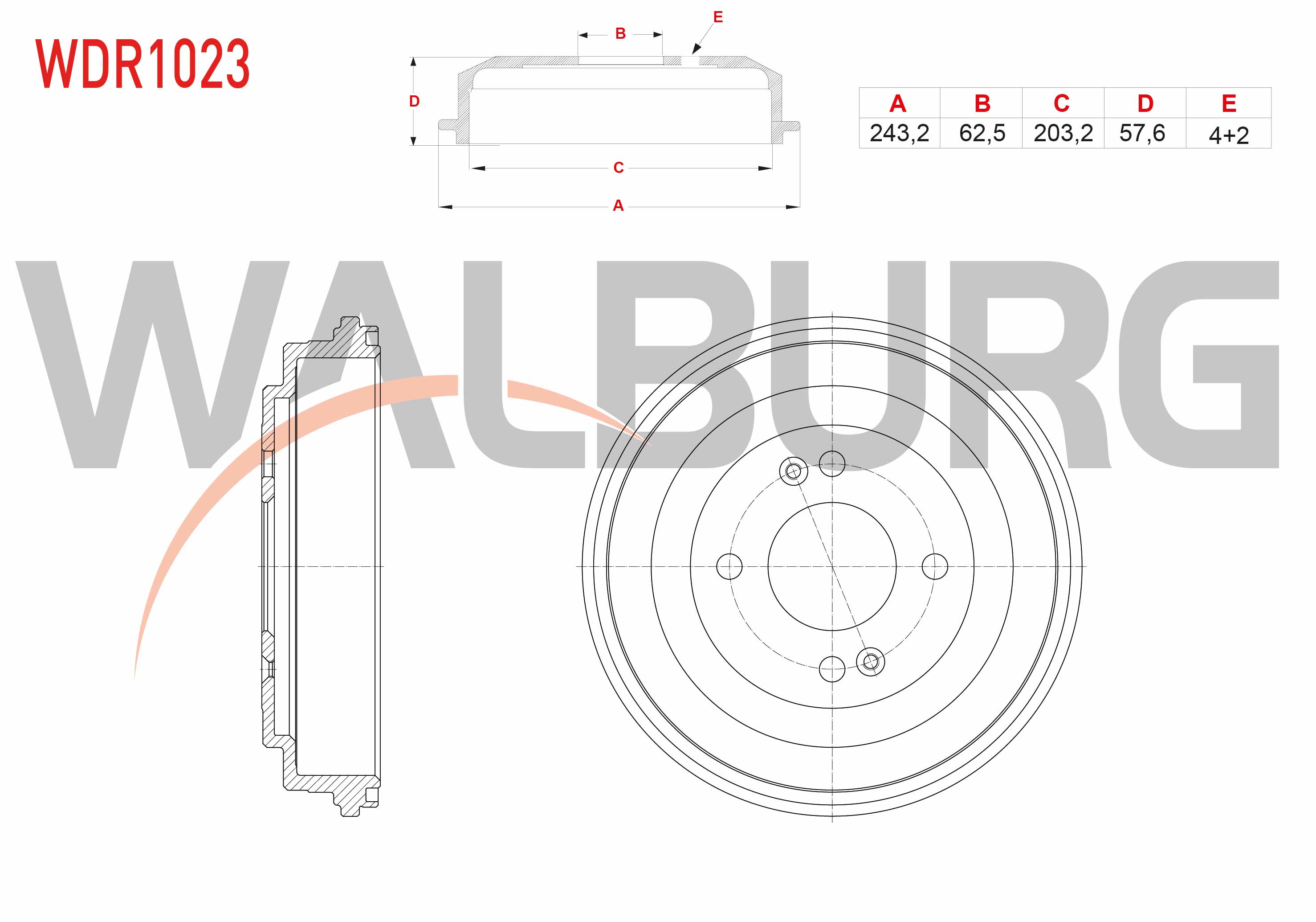 WALBURG WDR1023 | Fren Kampanası Arka 4 Delik 243,2X62,5X203,2X57,6 Hyundai Accent Era 1.4İ-1.5 CRDI-1.6 Cvvt 2006-2012 / i20 1.2 D-Cvvt-1.4 CRDI-1.4 Cvvt 2008-2015 / Kia Rio II 1.4İ-1.5 CRDI 2006-2011