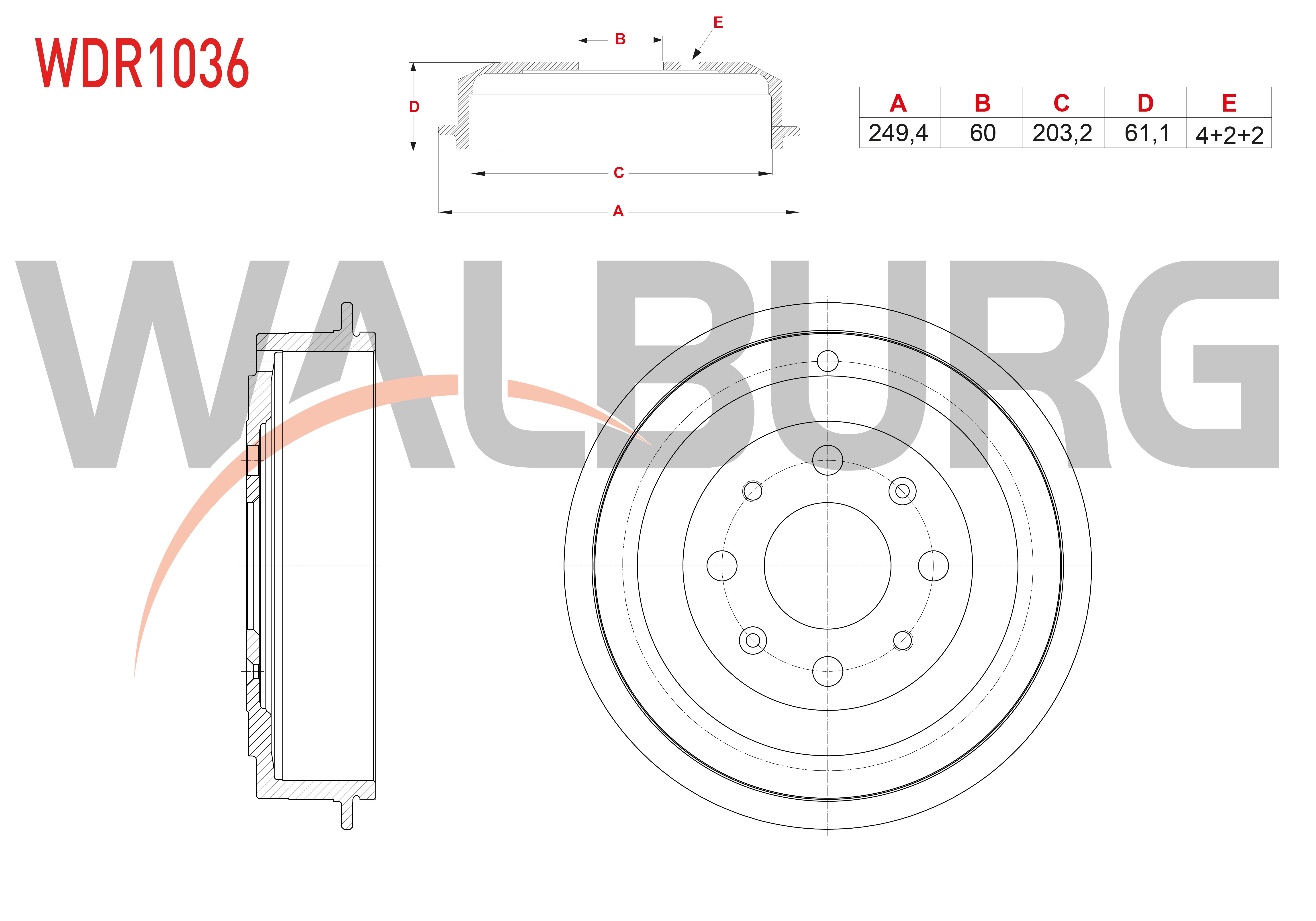 WALBURG WDR1036 | Fren Kampanası Arka 4 Delik Fiat Grande Punto 1.2 2005-2012 / Punto 1.2 2009-2012 / Opel Corsa D 1.2 2006-2014