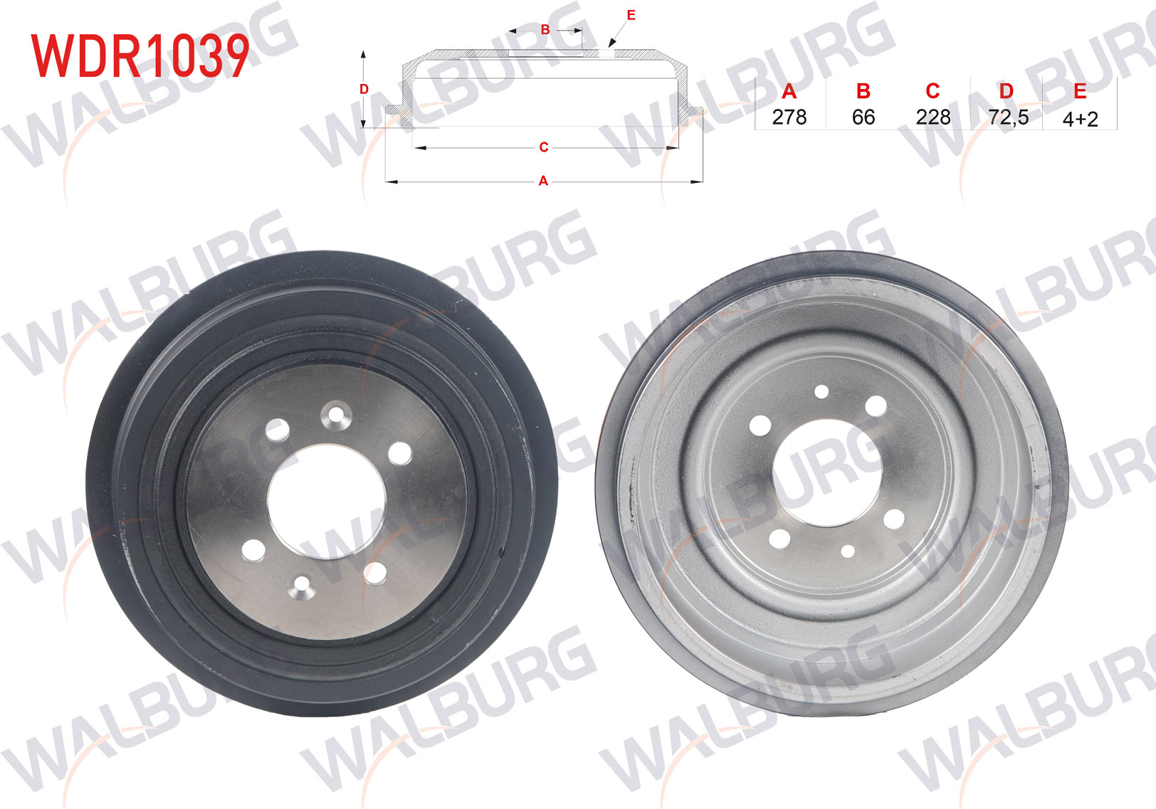 WALBURG WDR1039 | Fren Kampanası Arka 4 Delik Renault Kangoo 1.5 DCI 1998-2008