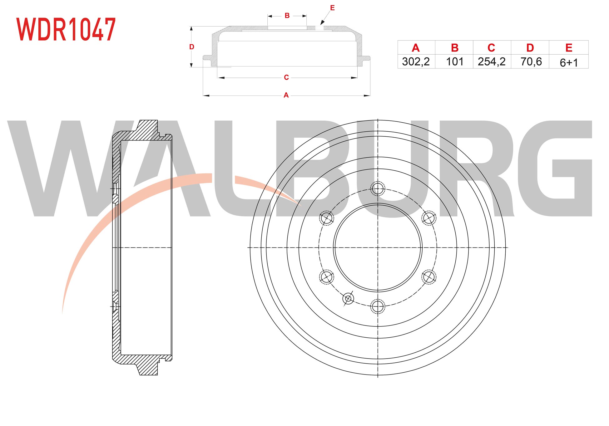 WALBURG WDR1047 | Fren Kampanası Arka 6 Delik 302,2X101x254,2X70,6 Isuzu D-Max 2.5 Dıtd-3.0 Dıtd 2007-2011