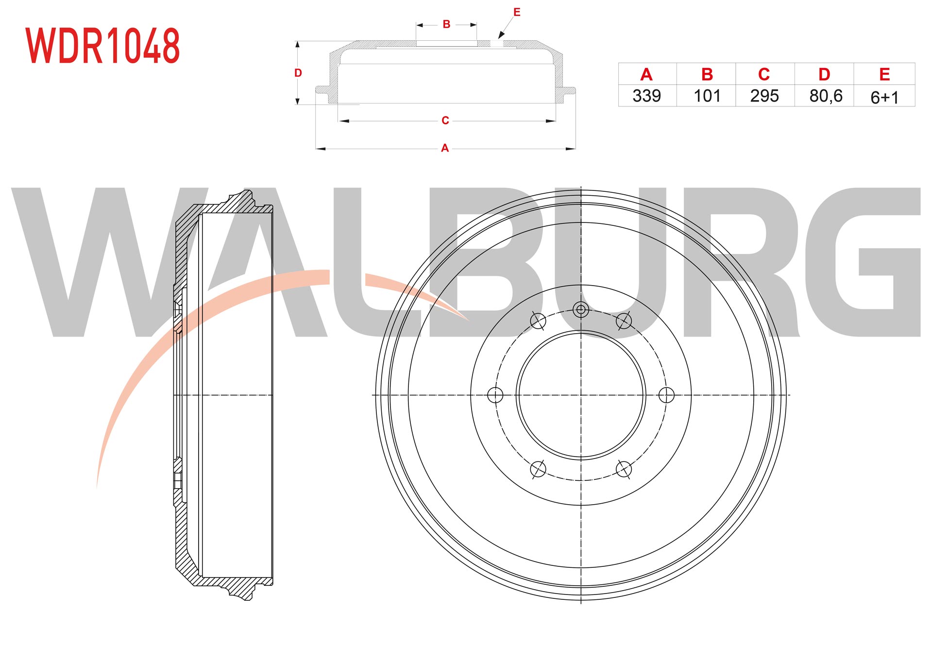 WALBURG WDR1048 | Fren Kampanası Arka 6 Delik 339X101x295x80,6 Isuzu D-Max 2.5 Dıtd-3.0 Dıtd ABS'li 2007-2011