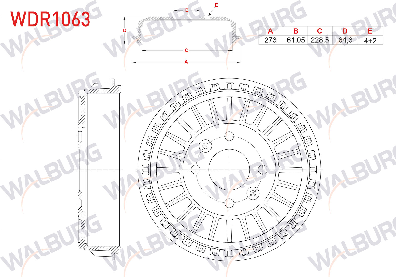 WALBURG WDR1063 | Fren Kampanası Arka 4 Delik 273X228,5X61x64,3 Renault Clio V 1.0 Sce-1.0 TCE-1.3 TCE-1.5 Blue DCI 2020 -
