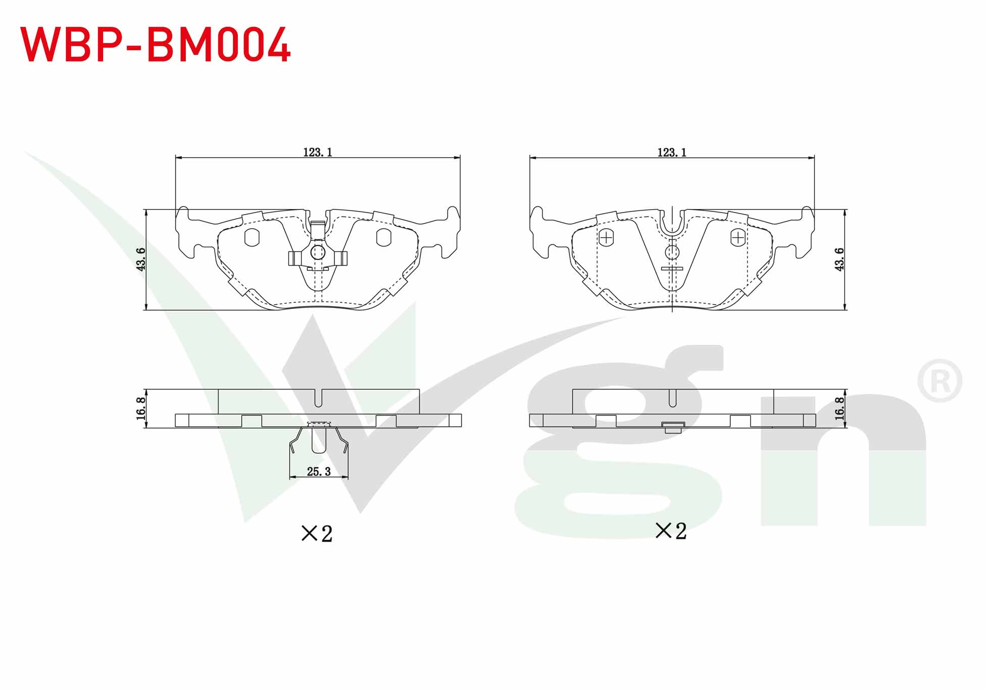 WGN WBP-BM004 | Fren Balata Arka BMW 5 Serisi (E34) 518 İ 1987-1995 / (E34) 520 İ 1987-1995 / (E34) 525 İ 1987-1995 / (E34) 530 İ V8 1987-1995 / 3 Serisi (E36) 320 İ 1990-1998