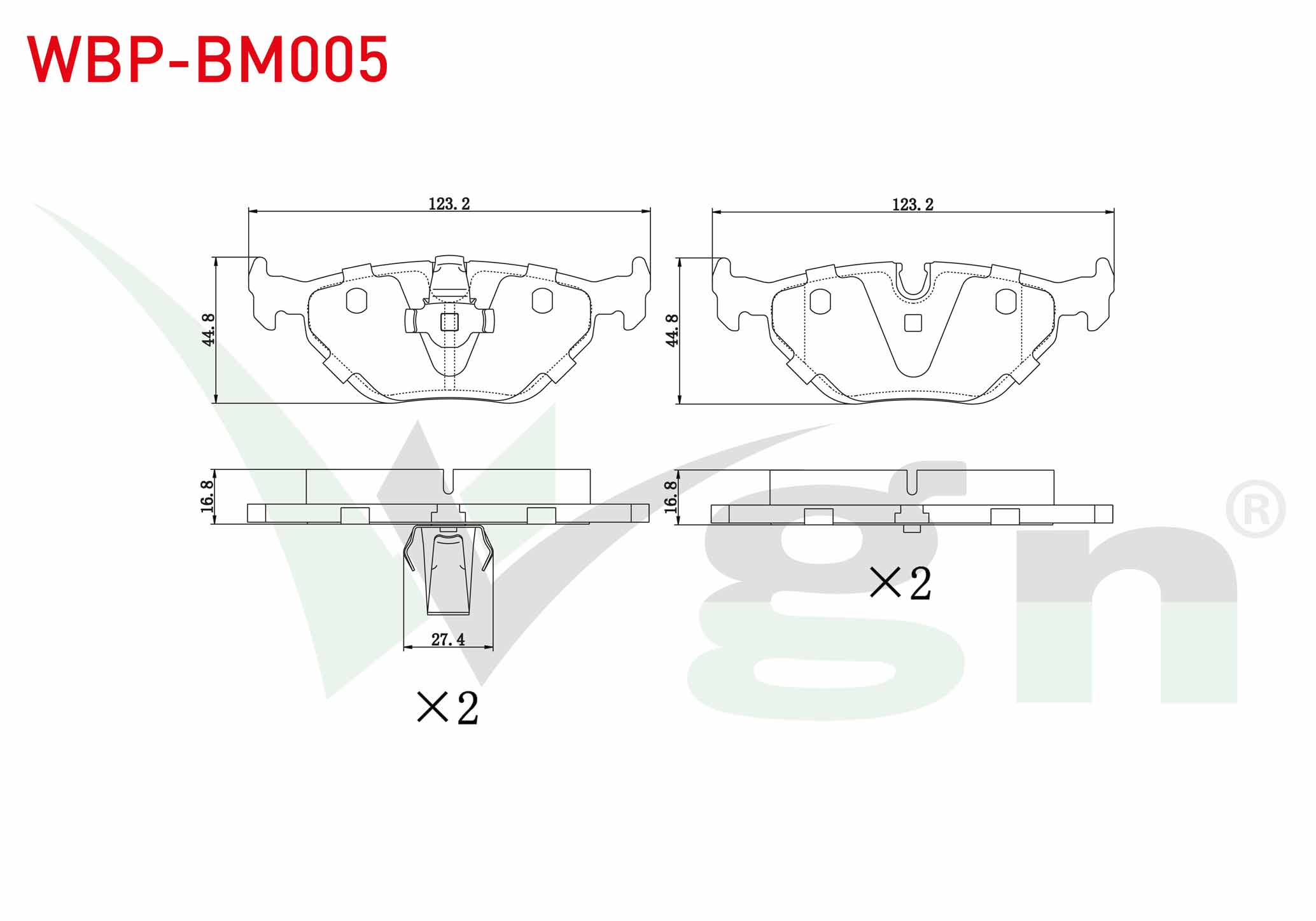 WGN WBP-BM005 | Fren Balata Arka BMW 5 Serisi (E39) 520 İ 1995-2003 / (E39) 523 İ 1995-2003 / (E39) 525 D 1995-2003 / (E39) 518 İ 1995-2003 / (E39) 525 İ 1995-2003 / (E39) 530 D 1995-2003 / (E39) 530 İ 1995-2003