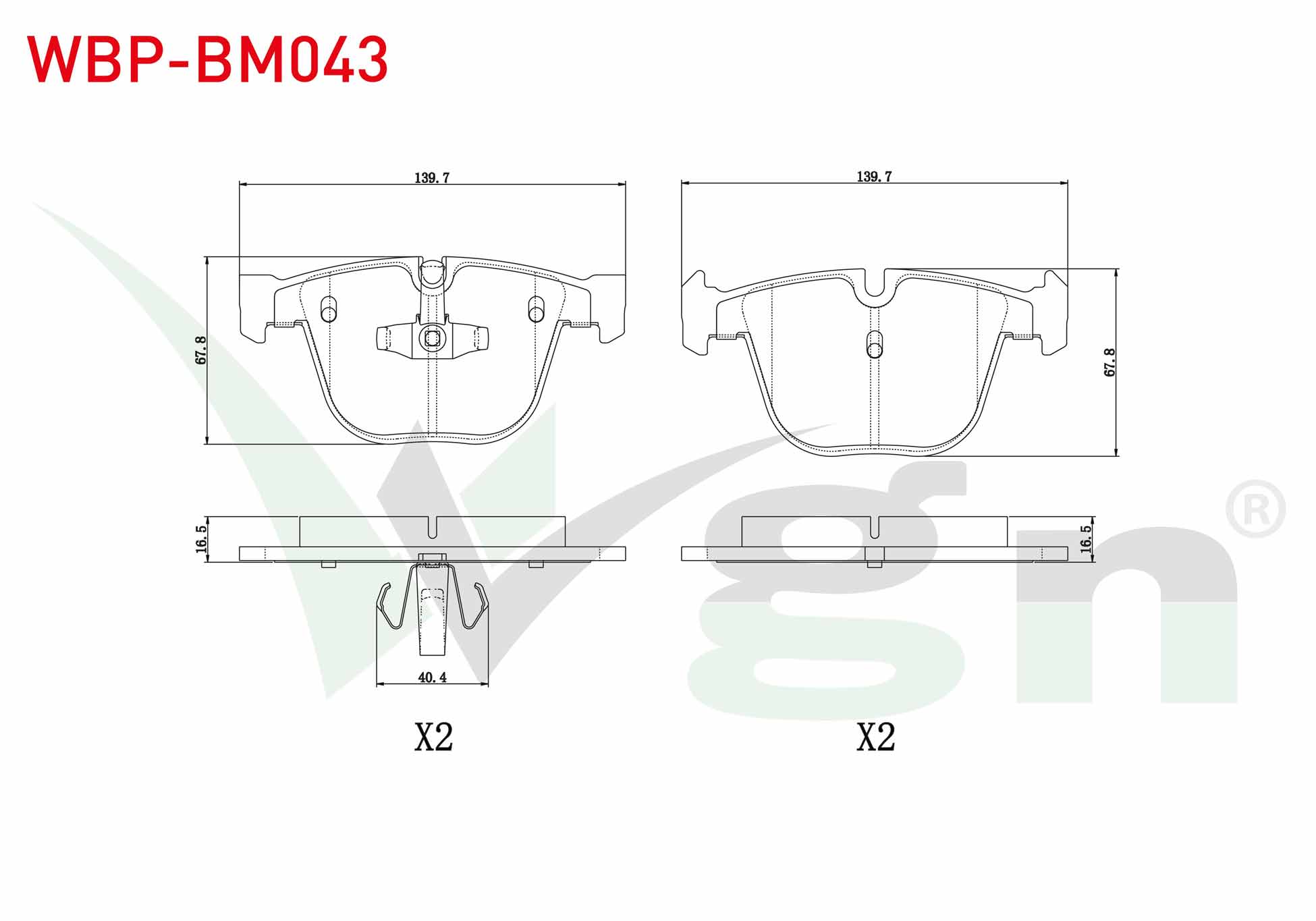 WGN WBP-BM043 | Fren Balata Arka BMW 5 Serisi Gran Turısmo (F07) 520 D 2009 -