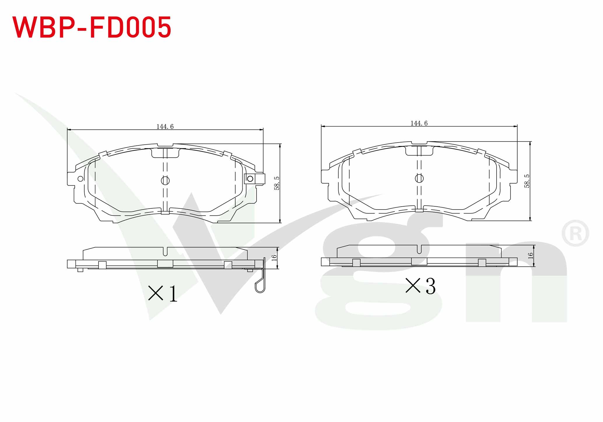 WGN WBP-FD005 | Fren Balata Ön Ikazlı Ford Ranger 2.5 TDCI 4X4 2002-2006 / Ranger 2.2 TDCI 2002-2006 / Ranger 3.0 TDCI 2002-2006 / Ranger 3.2 TDCI 2002-2006 / Mazda B Serisi (Un) 2.5 D 1998-2006