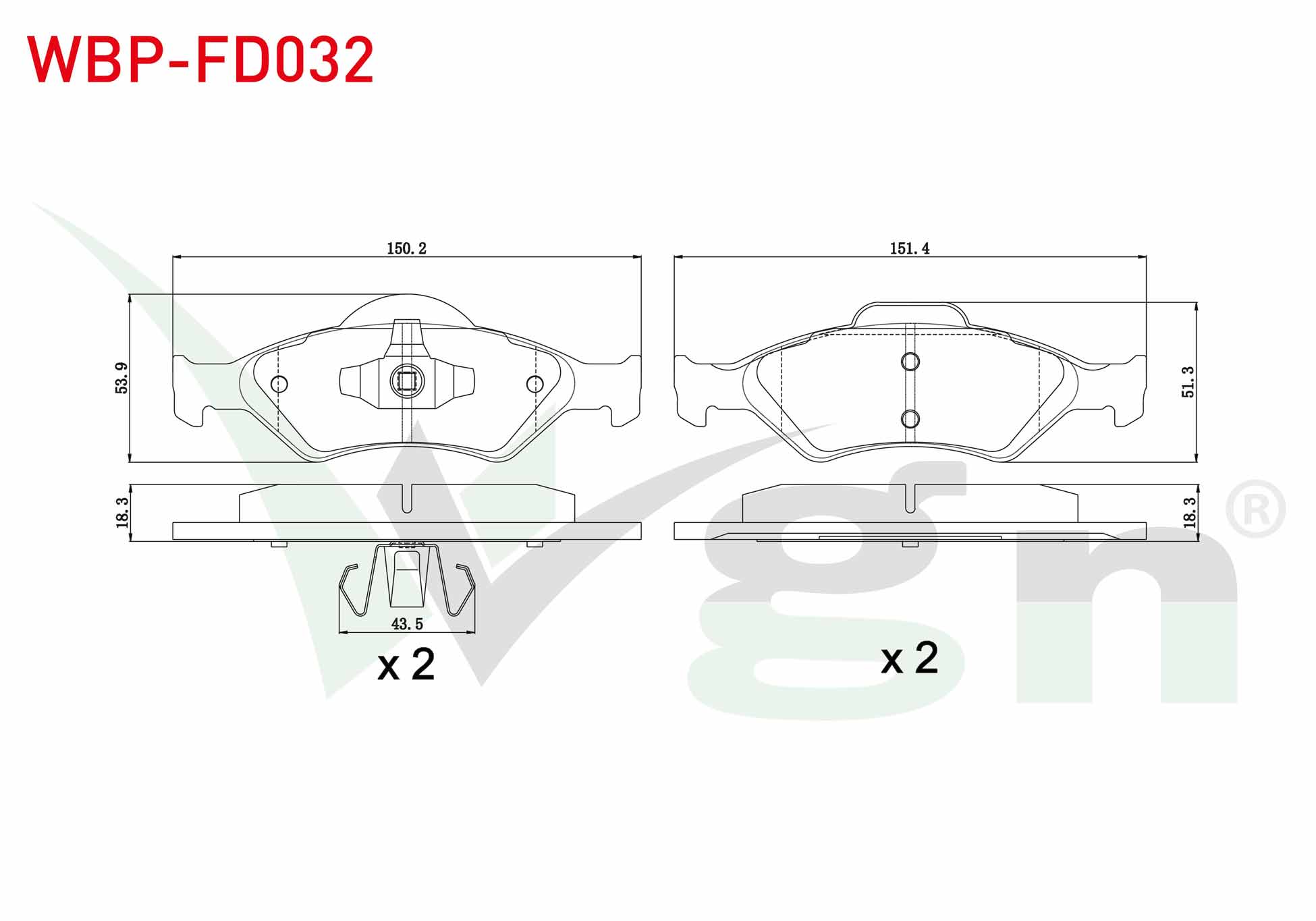 WGN WBP-FD032 | Fren Balata Ön Ford Fiesta IV 1.25İ 16V 1996-2002 / Fiesta IV 1.4İ 16V 1996-2002 / Fiesta IV 1.3İ 1996-2002