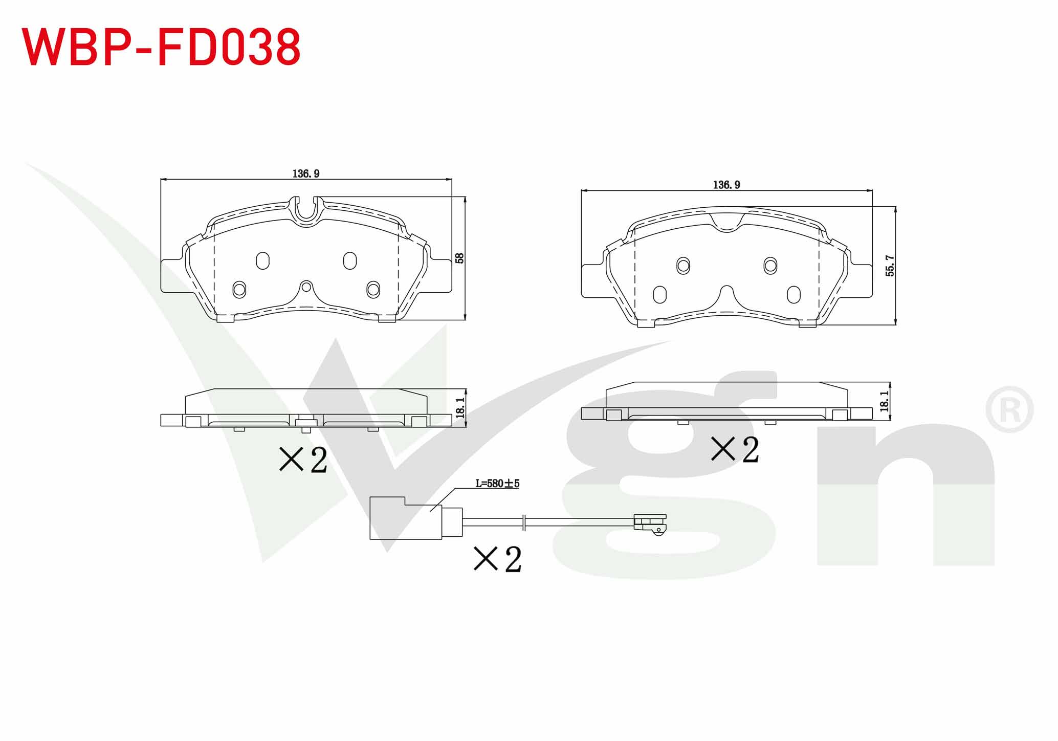 WGN WBP-FD038 | Fren Balata Fişli Arka Ford Transit (Çift Teker) 2.2 TDCI 17.00mm 2014 -