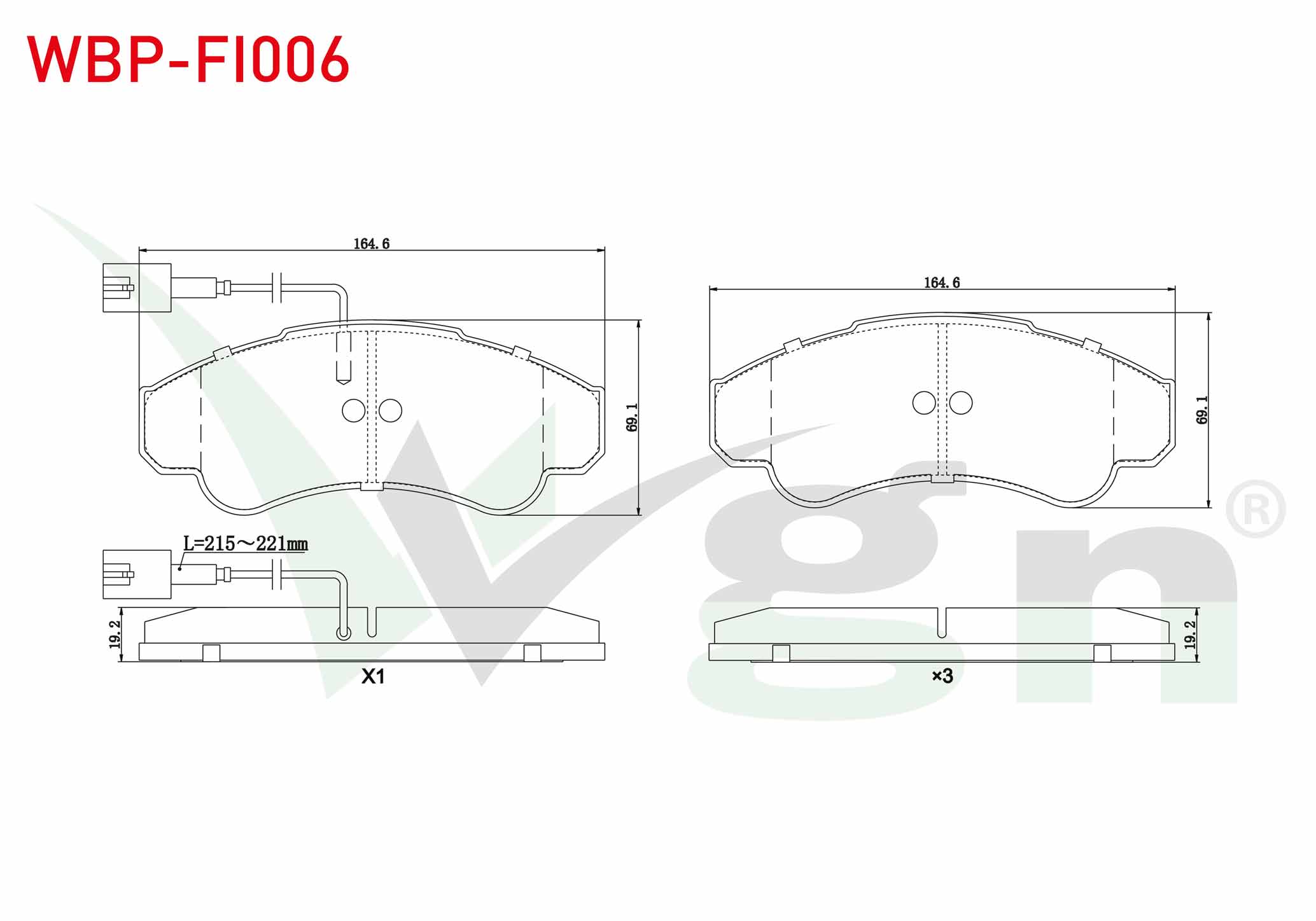 WGN WBP-FI006 | Fren Balata Ön Fişli Fiat Ducato (244) 2.3 JTD 2002-2006 / Ducato (244) 2.8 JTD 2002-2006 / Citroen Jumper II 2.8 HDI 2002-2006 / Peugeot Boxer II 2.0 HDI 2002-2006 / Boxer II 2.8 HDI 2002-2006