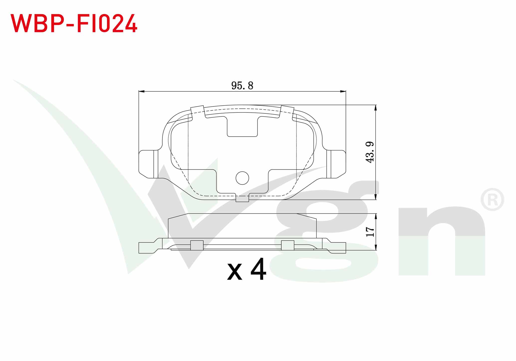 WGN WBP-FI024 | Fren Balata Arka Fiat Linea 1.6 Mjt 2007-/ Linea 1.4 T-Jet 2007-/ Alfa Romeo 147 (937) 1.6 2001-2010 / 147 (937) 1.9 JTD 2001-2010