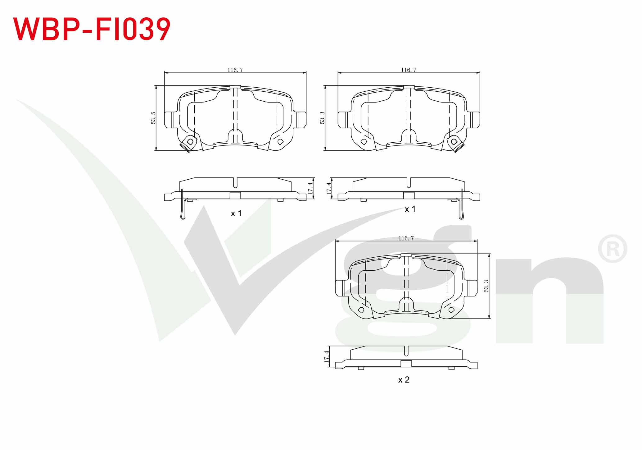 WGN WBP-FI039 | Fren Balata Arka Ikazlı Fiat Freemont (Jf) 2.0 Mjt 170 Hp 2011-/ Chrysler G.Voyager 3.3İ 2008-/ Jeep Wrangler III 2.8 CRDI 2007-/ Dodge Nitro 2.8 Crd 2007-/ Dodge Journey 2.0 Crd 2008 -