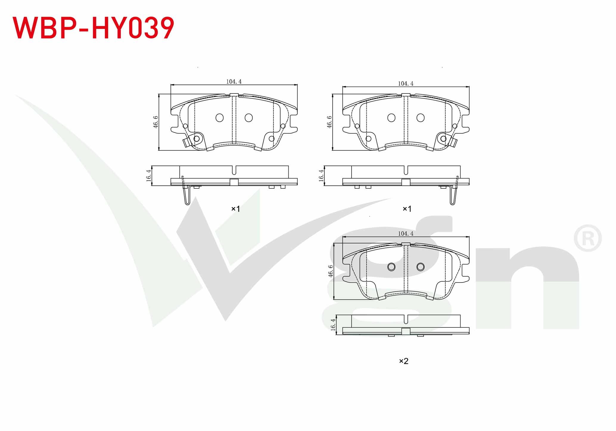 WGN WBP-HY039 | Fren Balata Ön Ikazlı Hyundai Atos (Mx) 1.0İ 1998-2005 / Atos (Mx) 1.1İ 1998-2005 / Atos Prıme 1.0İ 2001-2008 / Atos Prıme 1.1İ 2001-2008