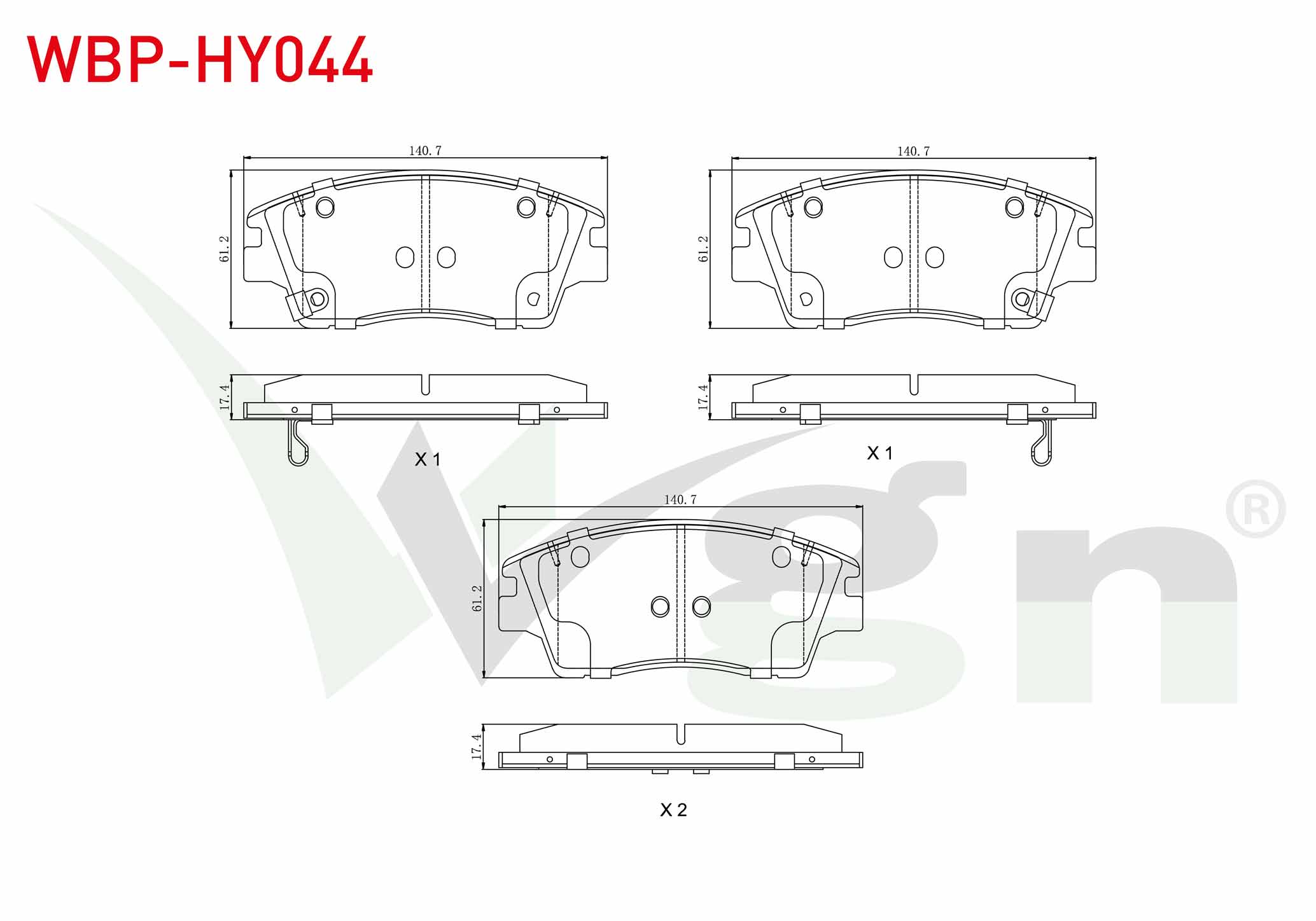WGN WBP-HY044 | Fren Balata Ön Ikazlı Tel Delikli Hyundai Tucson (Tle) 1.6 T-GDI 2015-/ Tucson (Tle) 1.6 GDI 2015-/ Tucson (Tle) 2.0 CRDI 2015-/ Kia Sportage (Ql) 1.6 GDI 2015-/ Sportage (Ql) 2.0 CRDI 2015 -