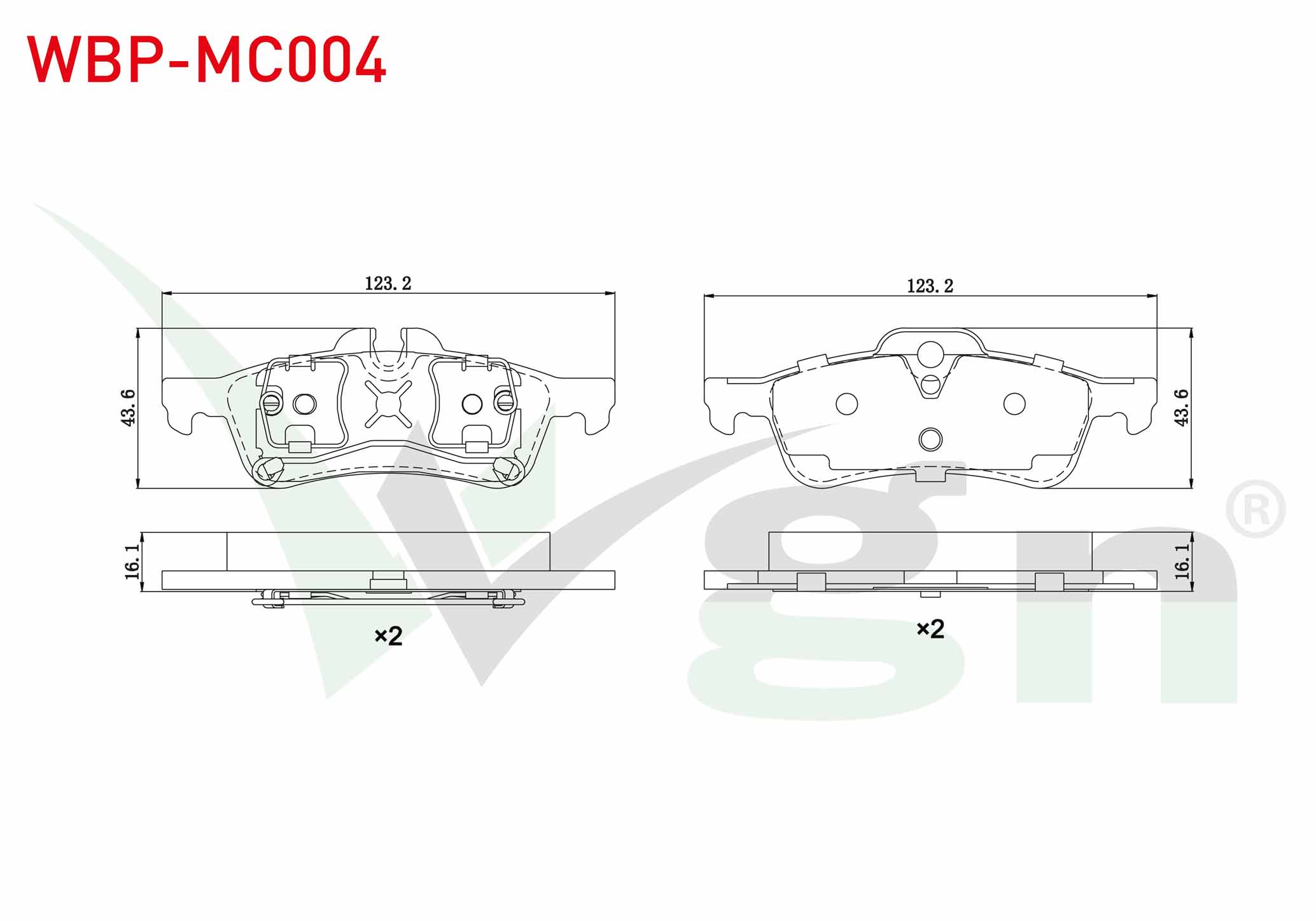 WGN WBP-MC004 | Fren Balata Arka Mini (R50,R53) Cooper 1.6 16.10mm 2001-2006