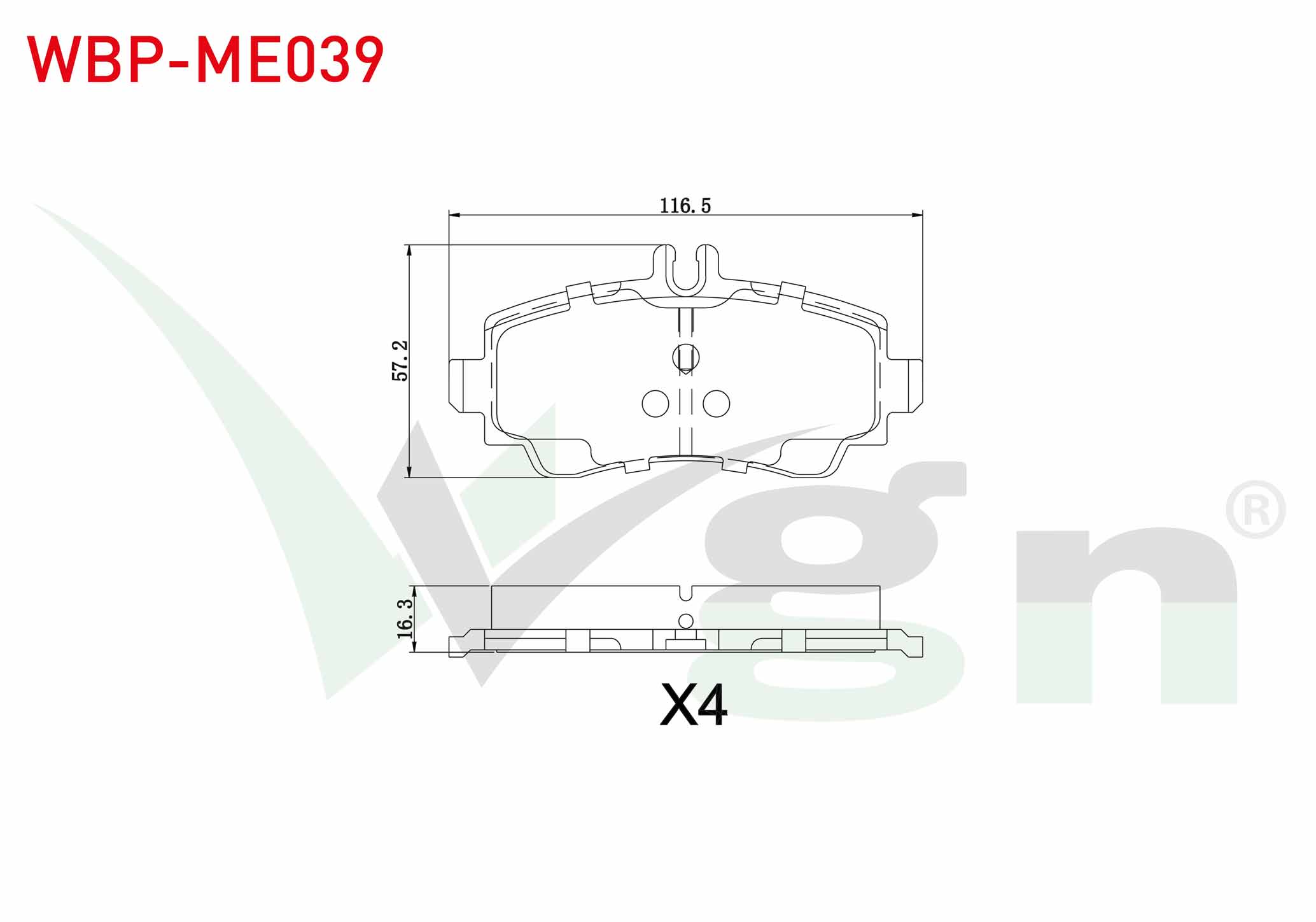 WGN WBP-ME039 | Fren Balata Ön Mercedes A Serisi (W168) A 160 1997-2004 / (W168) A 170 CDI 1997-2004