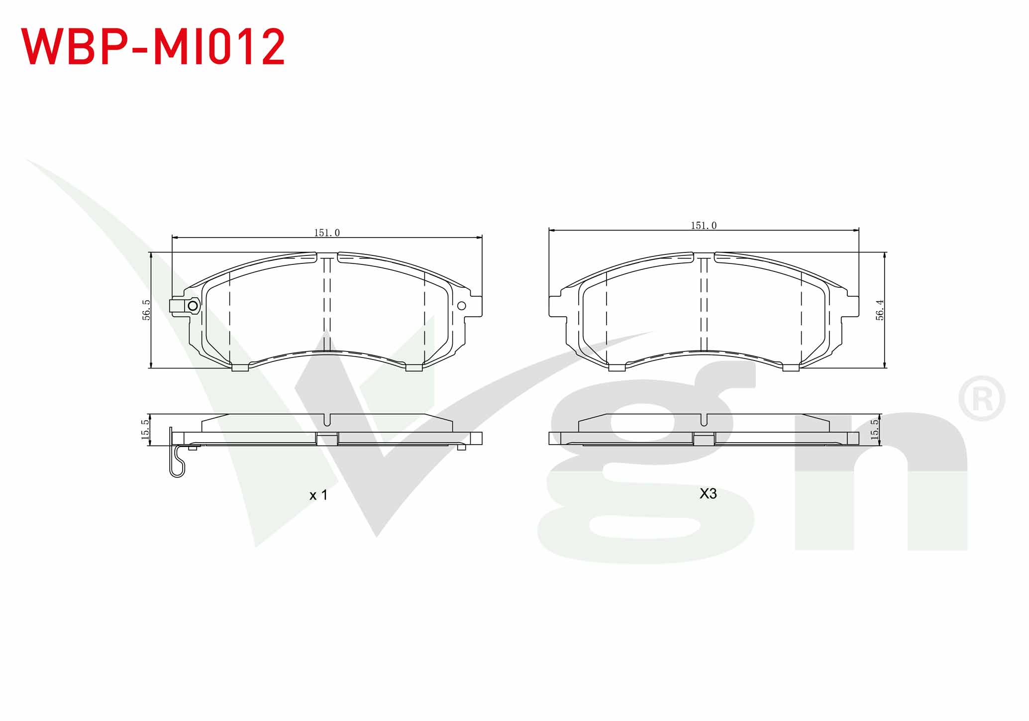 WGN WBP-MI012 | Fren Balata Ön Mitsubishi L 200 (K7t,K6t) 2.5 TD 4Wd 1996-2007