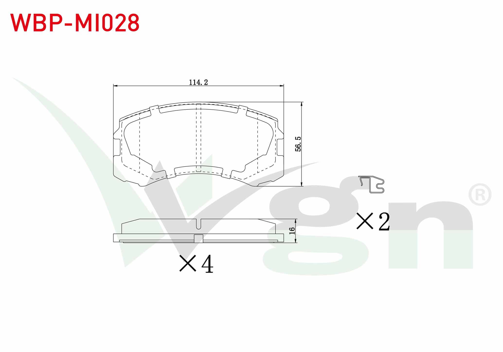 WGN WBP-MI028 | Fren Balata Ön Mitsubishi Lancer (Csw) 1.6 15.5mm 2003-2008