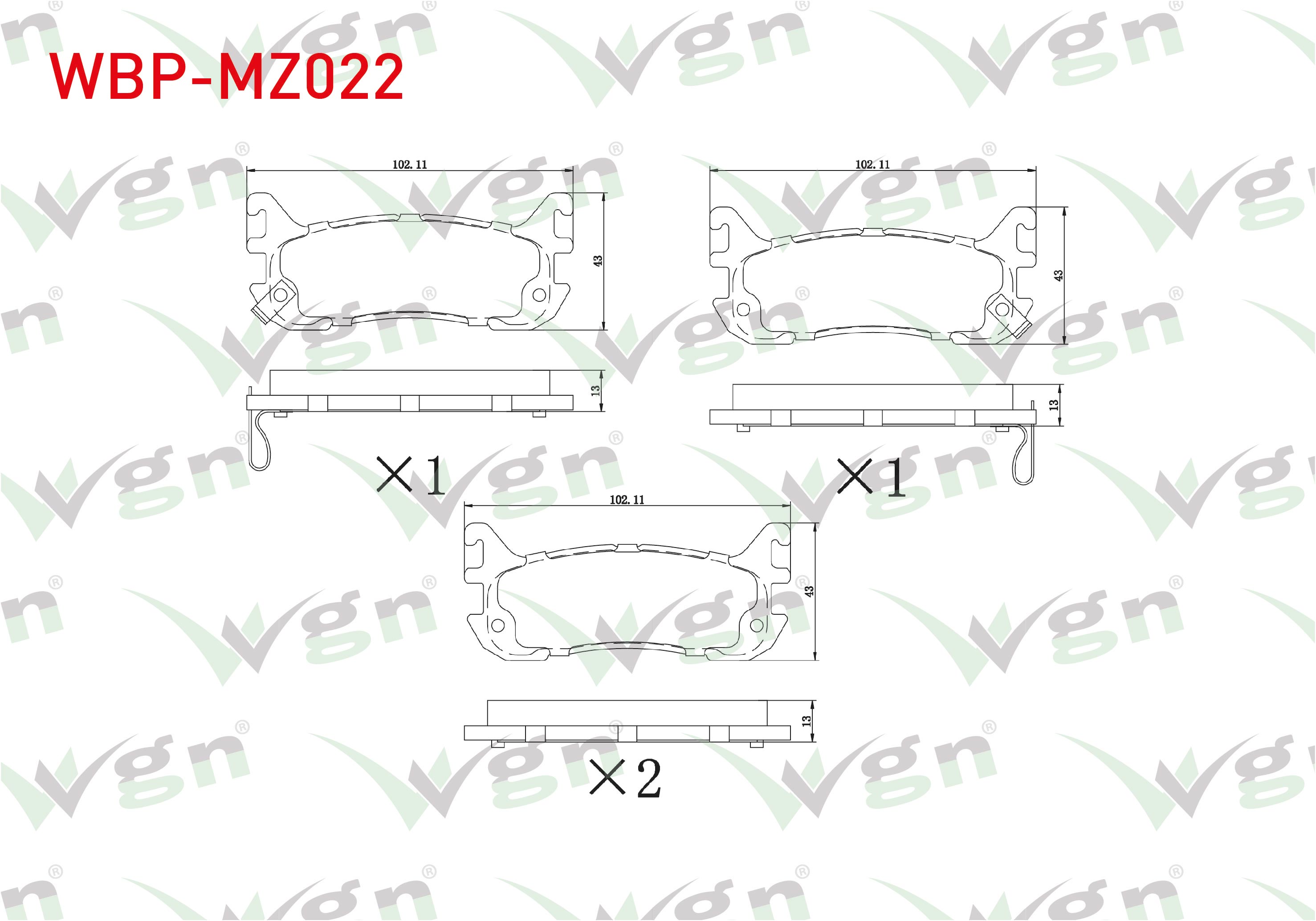 WGN WBP-MZ022 | Fren Balata Arka Ikazlı Mazda 323 V 1.5İ 16V-1.8İ 16V 1994-1998 / Mx-5 I 1.6İ 16V-1.8 1990-1998