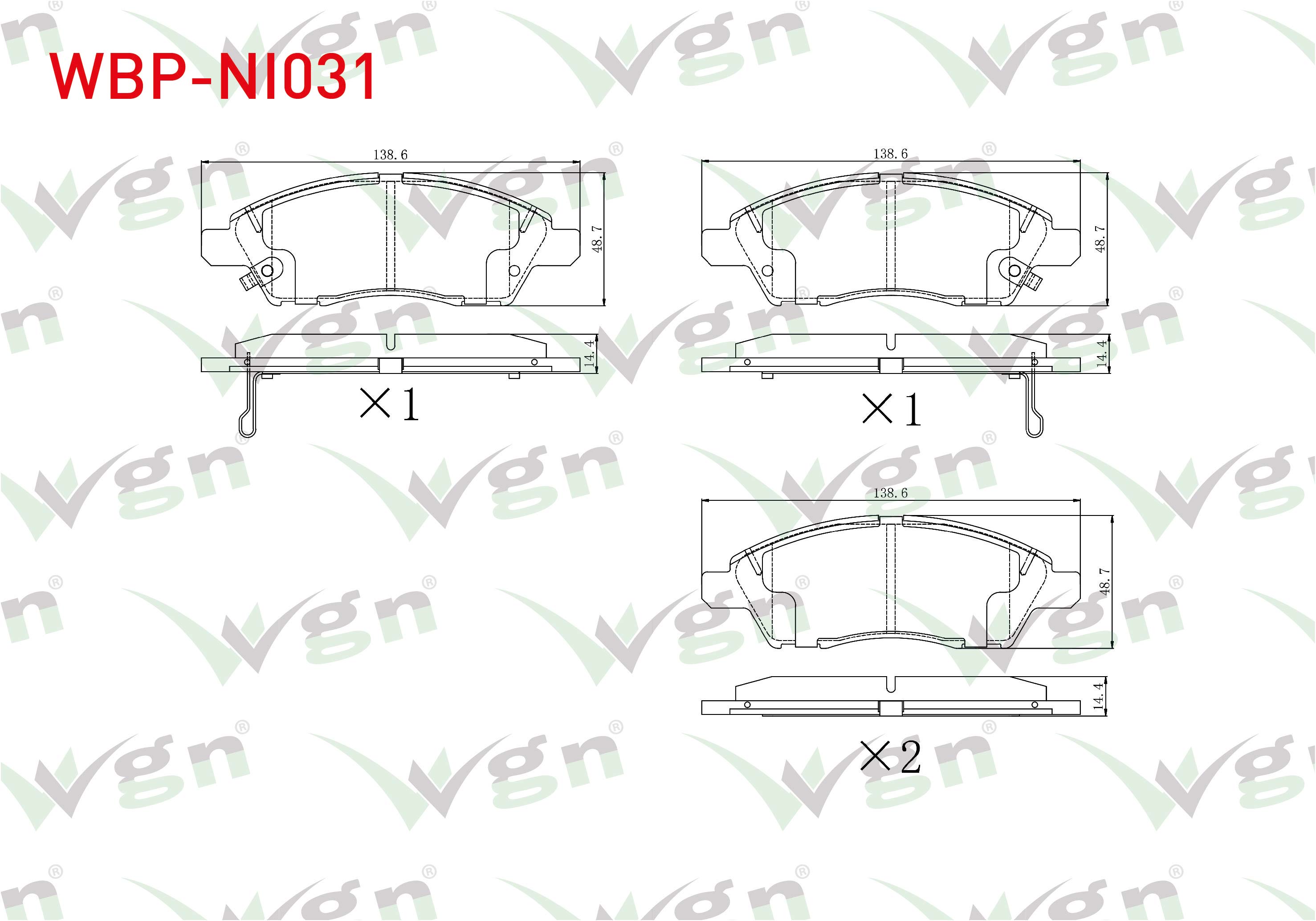 WGN WBP-NI031 | Fren Balata Ön Ikazlı Tel Delikli Nissan Micra IV (K13) 1.2 2010-/ Nissan Note (E12) 1.5 DCI 2013-/ Nissan Note (E12) 1.6İ 16V 2013 -