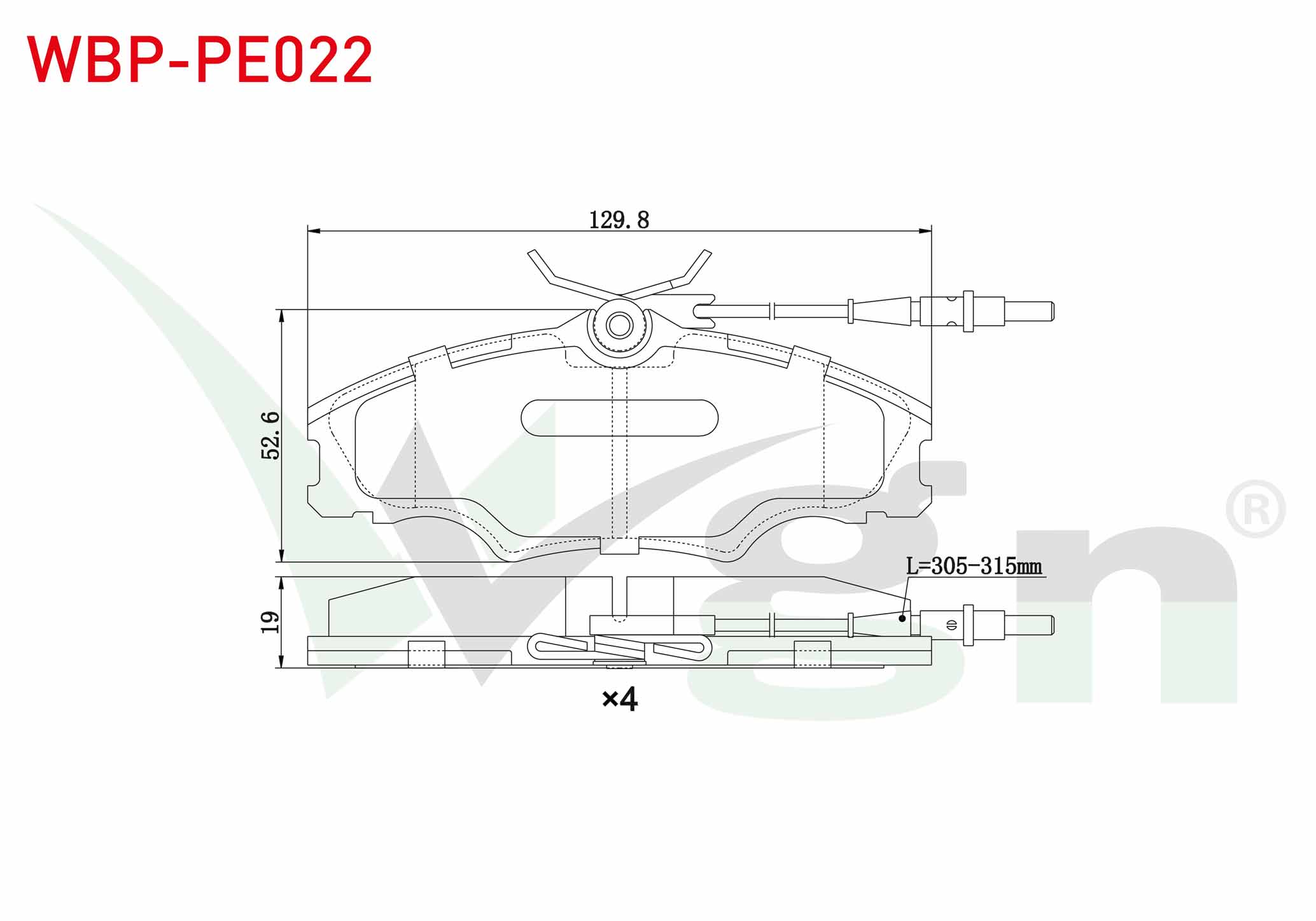 WGN WBP-PE022 | Fren Balata Ön Fişli Peugeot 406 (8B) 2.0 HDI 14 Jant 1995-2004 / 406 (8B) 2.0İ 1995-2004 / Expert (222,223,224) 2.0 JTD 1996-2006