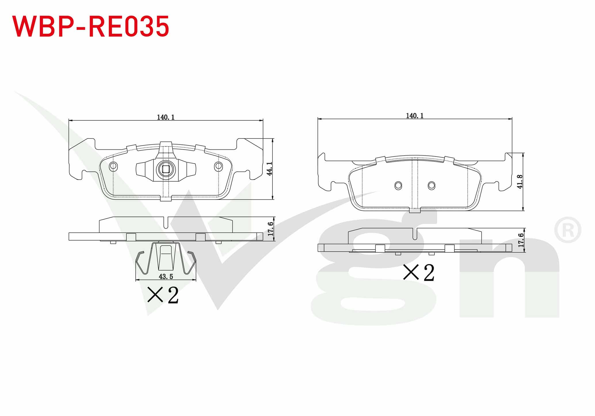 WGN WBP-RE035 | Fren Balata Ön Dacia Logan II 1.5 DCI 2012-/ Logan II 1.2 2012-/ Sandero II 1.2 2013-/ Sandero II 1.5 DCI 2013-/ Renault Twingo III 1.0 Sce 70 2014 -