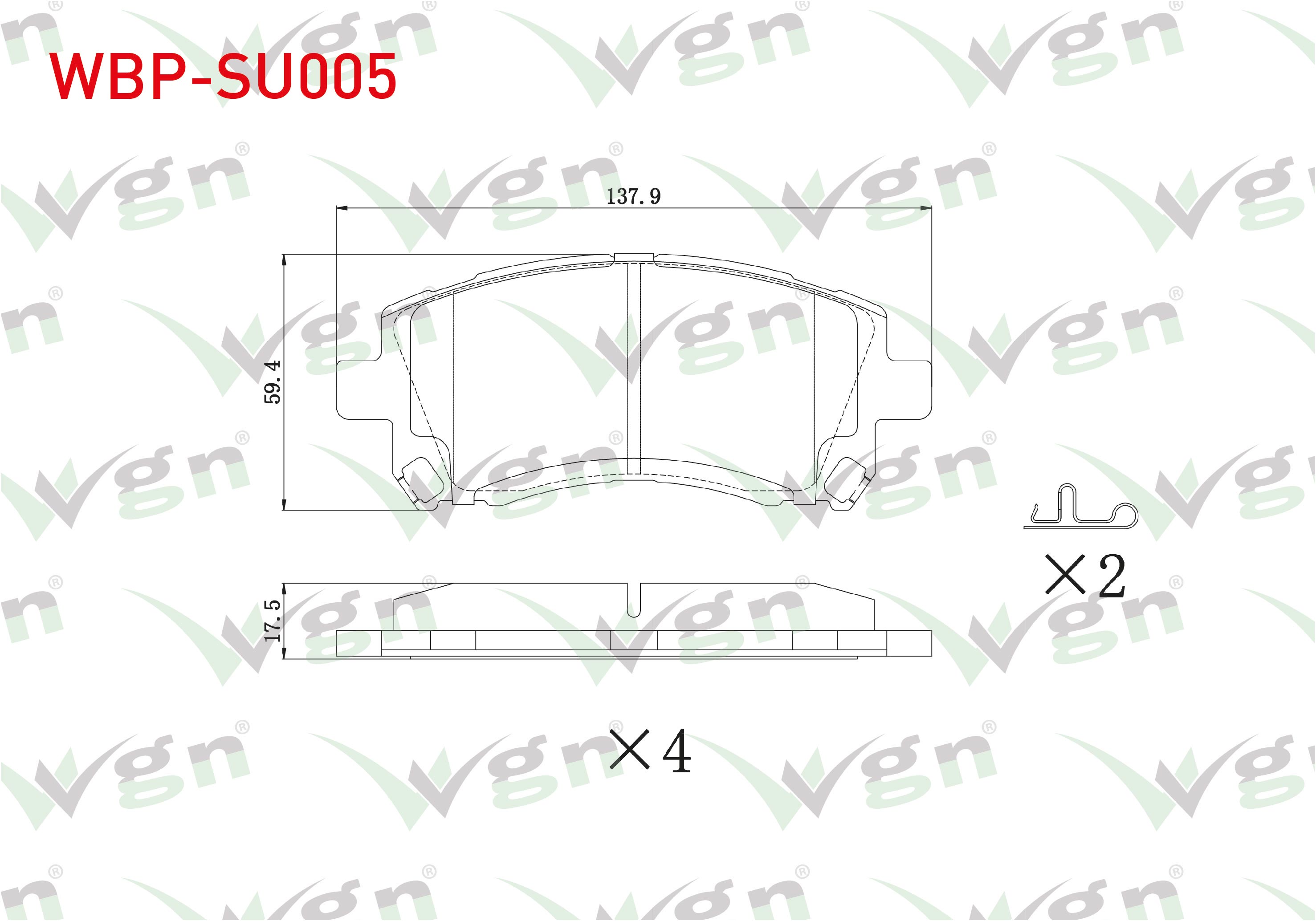 WGN WBP-SU005 | Fren Balata Ön Subaru Forester (Sf) 1995-2002 / Impreza 1992-2000 / Impreza 2000-2007 / Legacy II (Bd,Bg) 1994-1999 / Outback (Be, Bh) 1998-2003