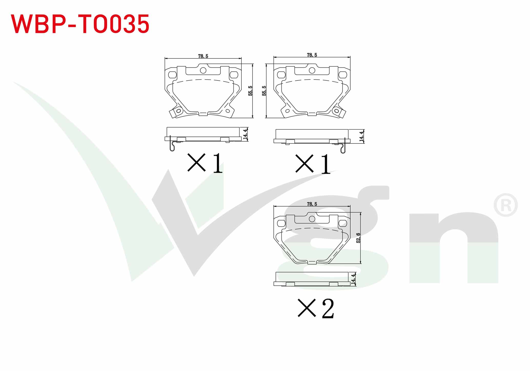 WGN WBP-TO035 | Fren Balata Arka Ikazlı Toyota Yaris (_Cp10) 1.0İ 1999-2005 / Yaris (_Cp10) 1.3İ 1999-2005 / Yaris (_Cp10) 1.5 Vvt-I 1999-2005 / Yaris (_Cp10) 1.4 D-4D 1999-2005