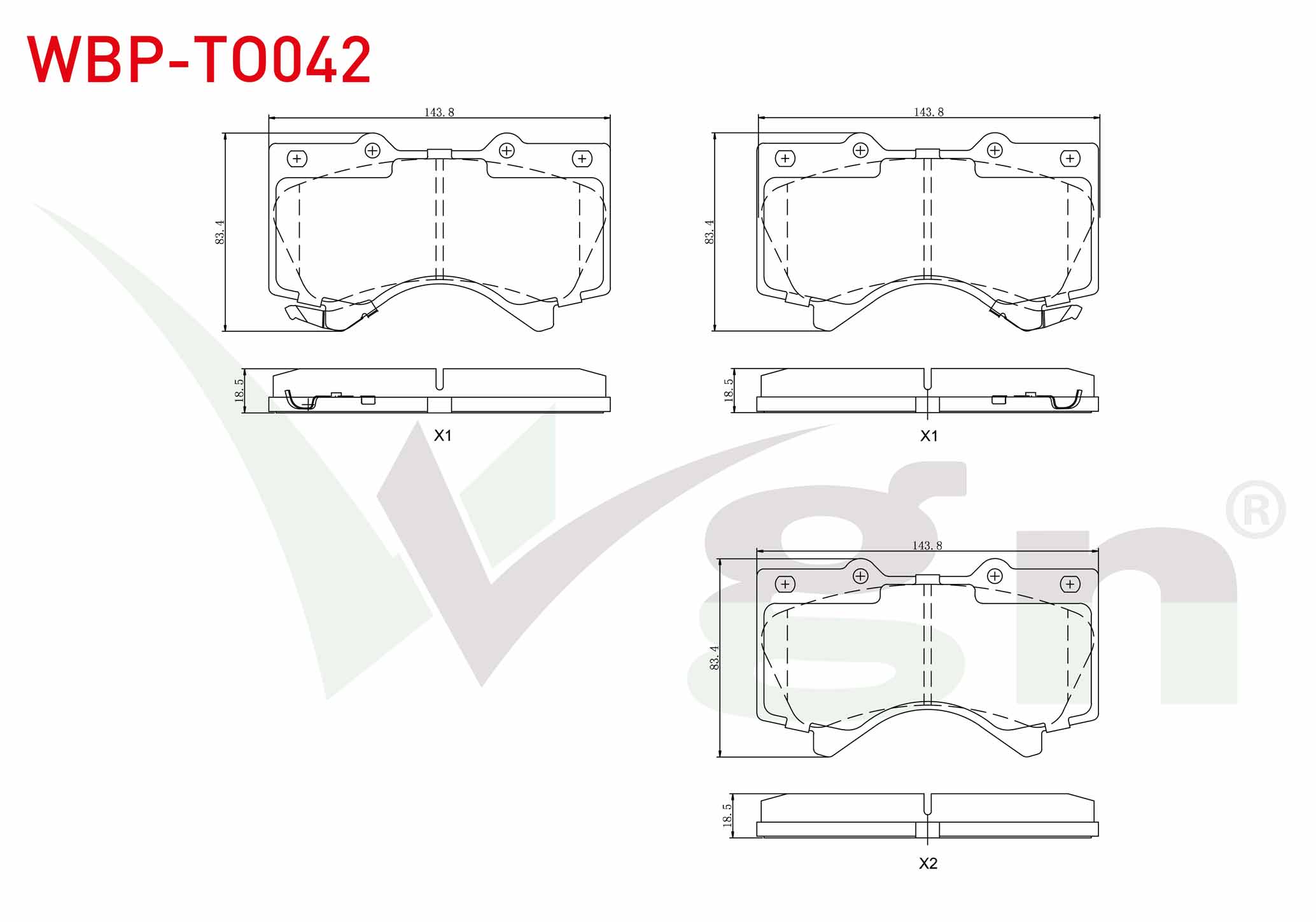 WGN WBP-TO042 | Fren Balata Ön Ikazlı Toyota Land Cruiser 4.7 V8 2008-/ Land Cruiser 4.5 D V8 2008-/ Land Cruiser 3.0 D-4D 2008 -