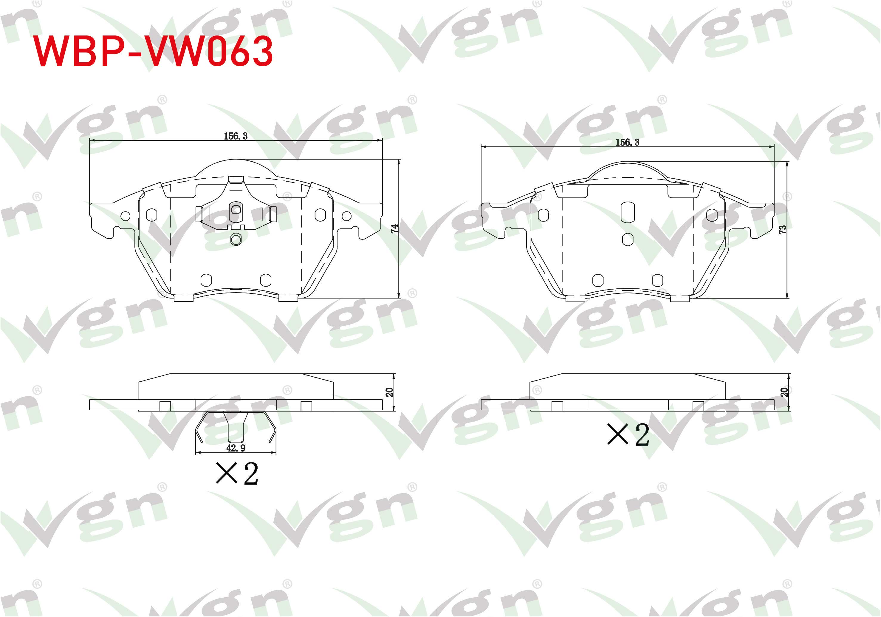 WGN WBP-VW063 | Fren Balata Ön Volkswagen Sharan (7M8,7M9,7M6) 1.8 T 1995-2010 / Sharan (7M8,7M9,7M6) 1.9 TDI 1995-2010