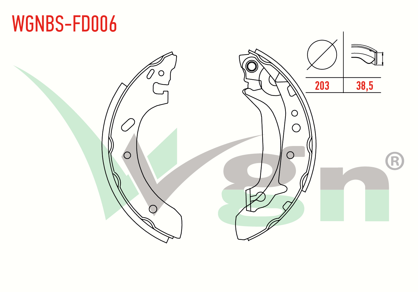 WGN WGNBS-FD006 | Fren Pabuç Balata Arka Ford Escort VII 1.3 Geniş Tip Levyelı 203X38,5mm 1995-1999 / Escort VII 1.4 1995-1999 / Escort VII 1.6 16V 1995-1999 / Escort VII 1.8 TD 1995-1999 / Escort VII 1.8İ 1995-1999