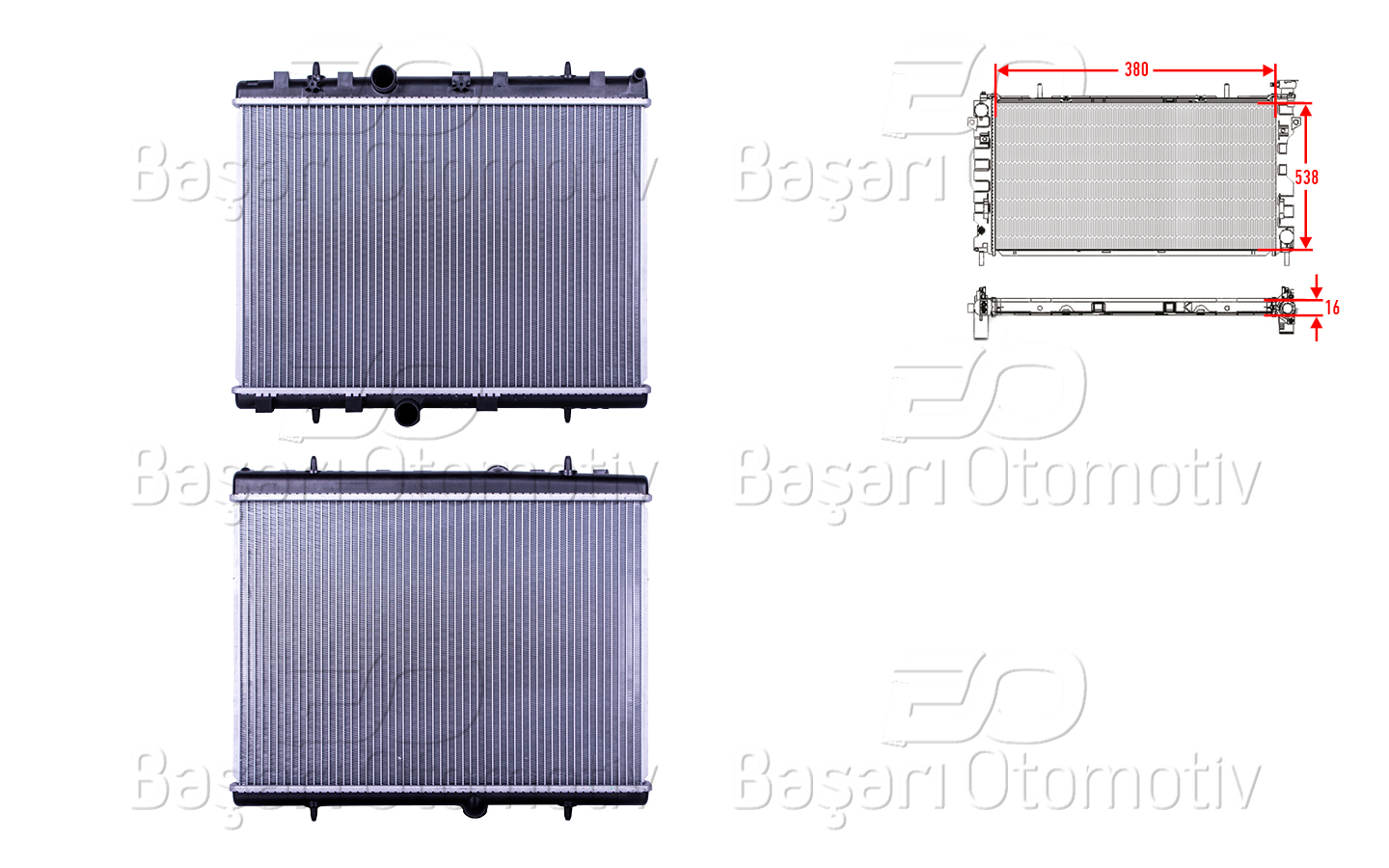 WISCO 3113435-00 | Su Radyatörü Brazing Mt 380X538x16 mm Uc Fan Ayakl Citroen C3 C4 Cactus C Elysee Ds3 P207 P208 P301 09 >