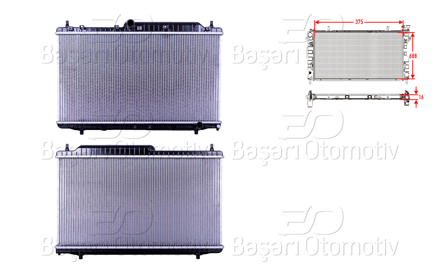 WISCO 3114028-00 | Su Radyatörü Brazing Mt 375X688x16 Chery Alıa 1.6 11-12